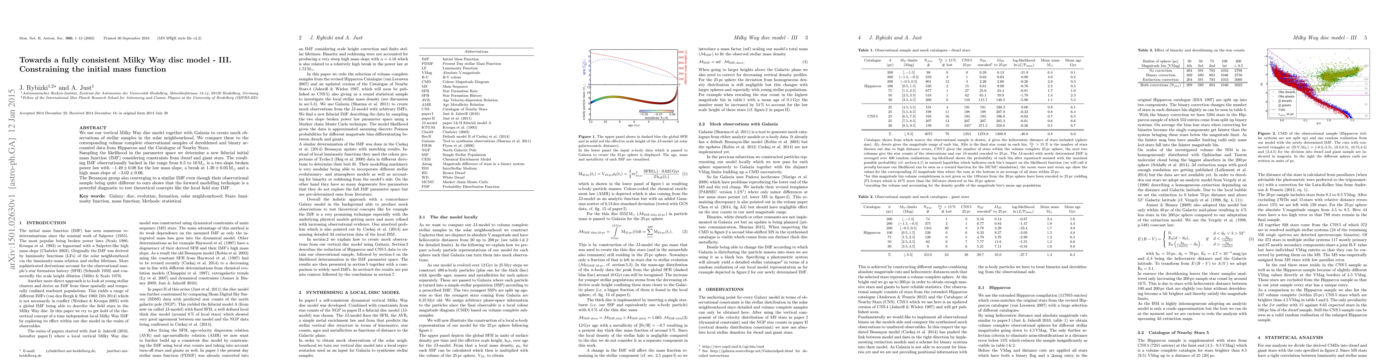 We use our vertical Milky Way disc model together with Galaxia to create mock observations of stellar samples in the solar neighbourhood. We compare these to the corresponding volume complete observational samples of dereddened and binary accounted data from Hipparcos and the Catalogue of Nearby Stars. Sampling the likelihood in the parameter space we determine a new fiducial IMF considering constraints from dwarf and giant stars. The resulting IMF observationally backed in the range from 0.5 to 10 Msun is a two slope broken power law with -1.49 +- 0.08 for the low mass slope, a break at 1.39 +- 0.05 Msun and a high mass slope of -3.02 +- 0.06. The Besancon group also converging to a similar IMF even though their observational sample being quite different to ours shows that the forward modelling technique is a powerful diagnostic to test theoretical concepts like the local field star IMF.
