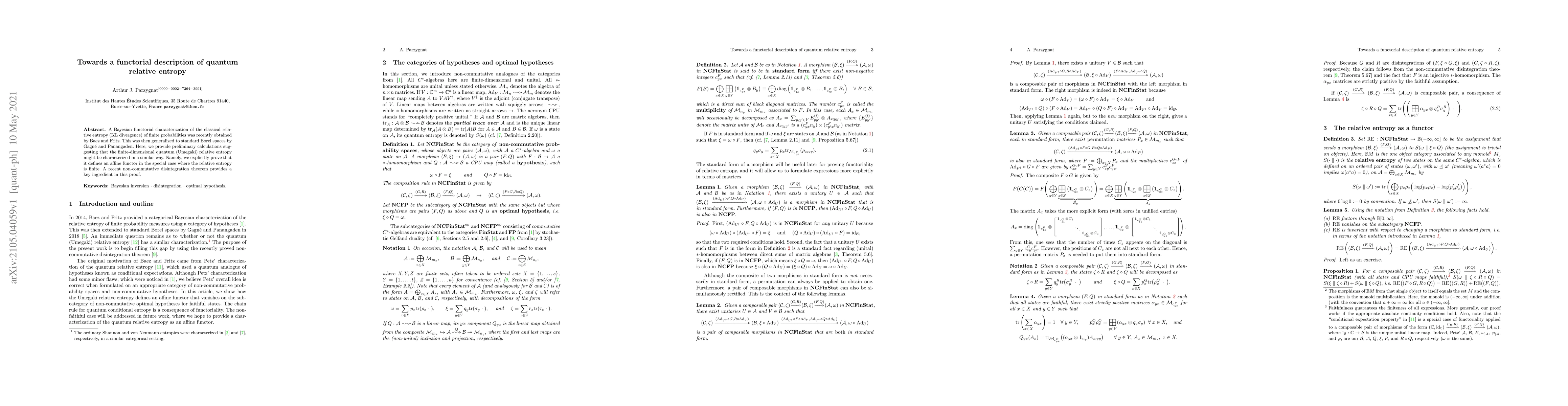 This paper explores the possibility of a functorial description of quantum relative entropy, analogous to the Bayesian functorial characterization of classical relative entropy. It proves that finite-dimensional quantum relative entropy defines an affine functor, leveraging a recent non-commutative disintegration theorem.