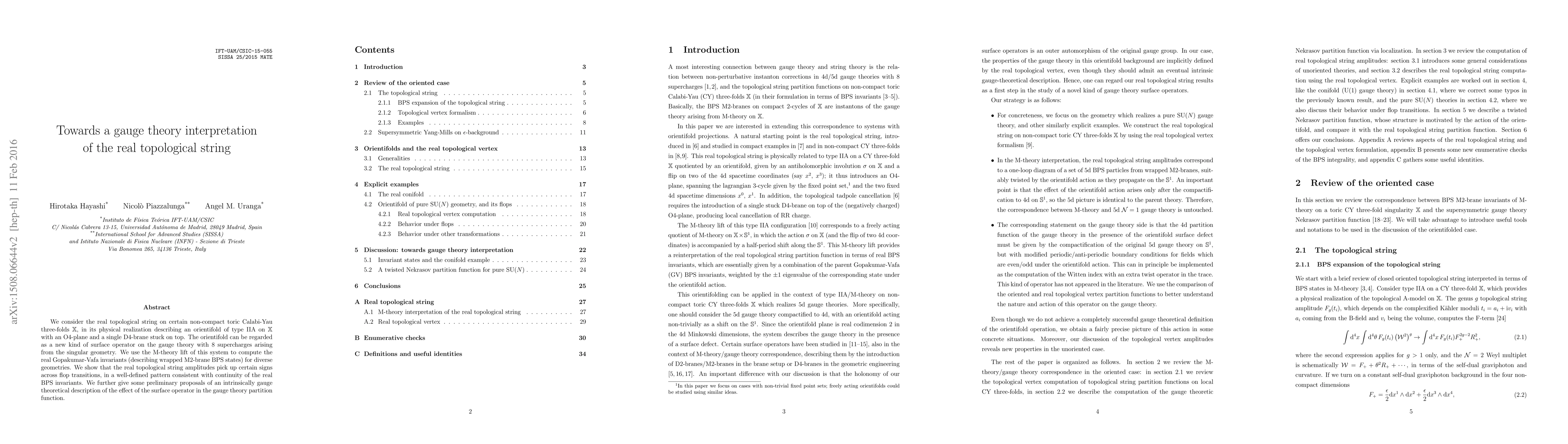 We consider the real topological string on certain non-compact toric Calabi-Yau three-folds X, in its physical realization describing an orientifold of type IIA on X with an O4-plane and a single D4-brane stuck on top. The orientifold can be regarded as a new kind of surface operator on the gauge theory with 8 supercharges arising from the singular geometry. We use the M-theory lift of this system to compute the real Gopakumar-Vafa invariants (describing wrapped M2-brane BPS states) for diverse geometries. We show that the real topological string amplitudes pick up certain signs across flop transitions, in a well-defined pattern consistent with continuity of the real BPS invariants. We further give some preliminary proposals of an intrinsically gauge theoretical description of the effect of the surface operator in the gauge theory partition function.