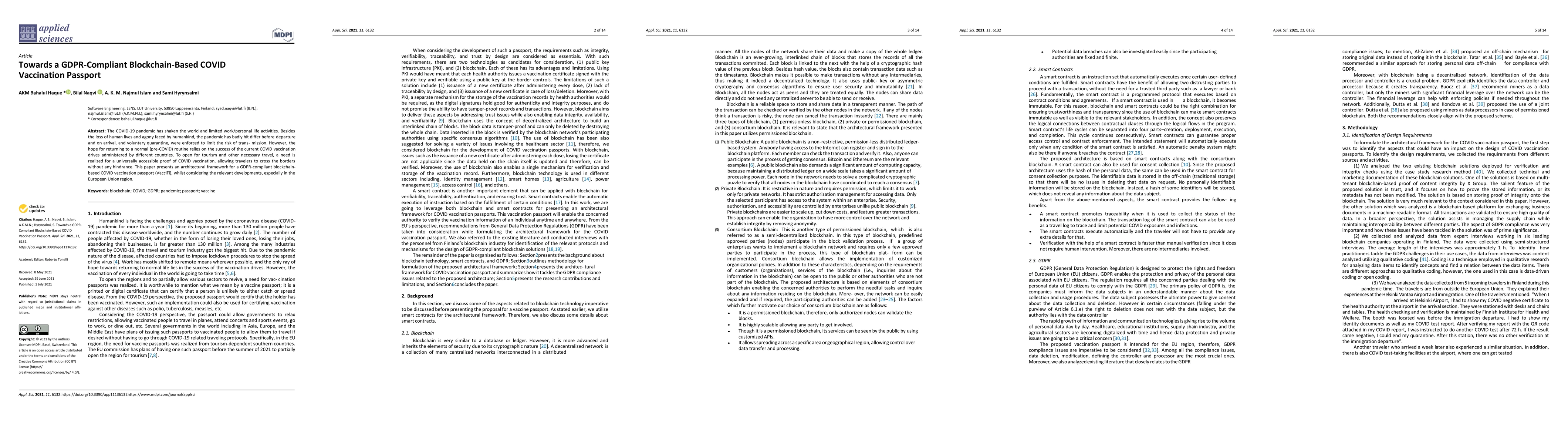This paper proposes a GDPR-compliant blockchain framework, VacciFi, to create a universally accessible COVID vaccination passport, ensuring secure and privacy-preserving proof of vaccination to facilitate travel during the pandemic. The design considers EU regulations and aims to restore normal travel activities.