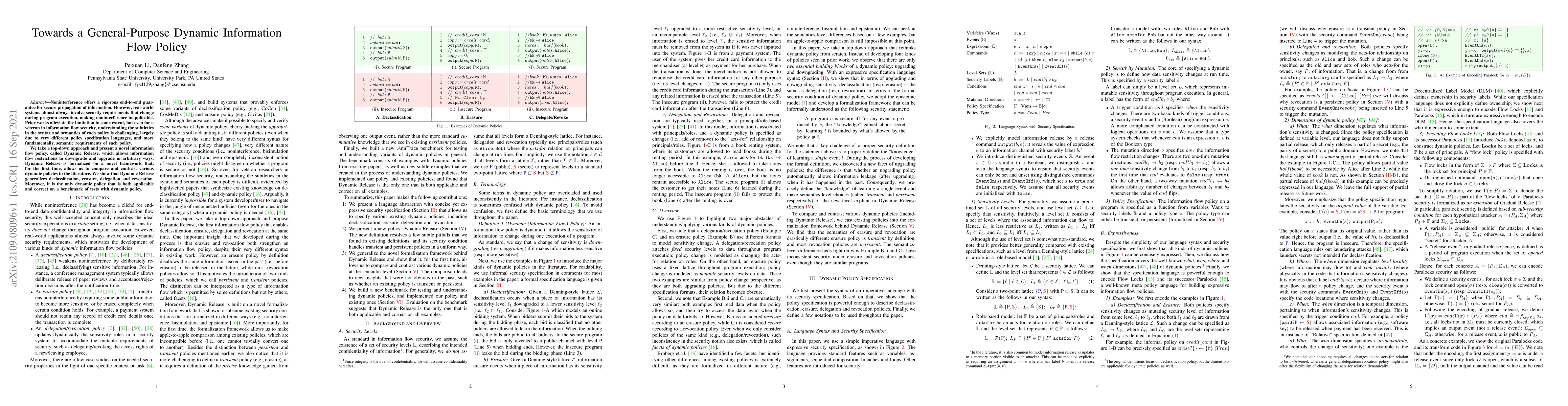 This paper introduces a novel dynamic information flow policy called Dynamic Release, which allows flexible information flow restrictions that can change during execution. The authors present a framework that enables comparison of various dynamic policies, demonstrating that Dynamic Release generalizes existing methods like declassification, erasure, delegation, and revocation, and is the only one that is both applicable and correct across a set of dynamic policy tests.