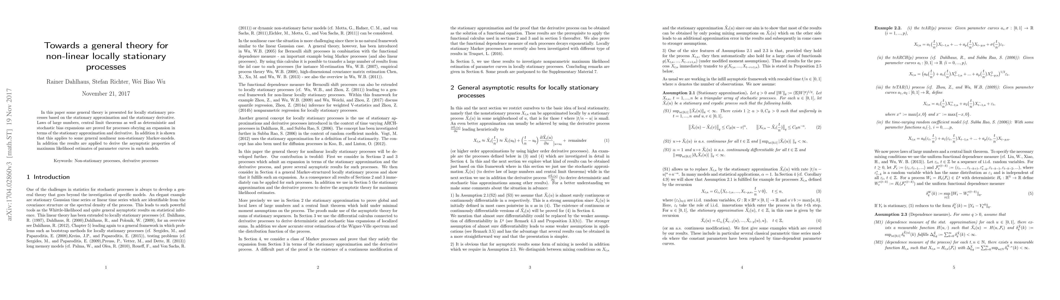 This paper develops a general theory for locally stationary processes, proving laws of large numbers, central limit theorems, and bias expansions. It extends these results to nonlinear non-stationary Markov models and applies them to derive the asymptotic properties of maximum likelihood estimates for parameter curves.