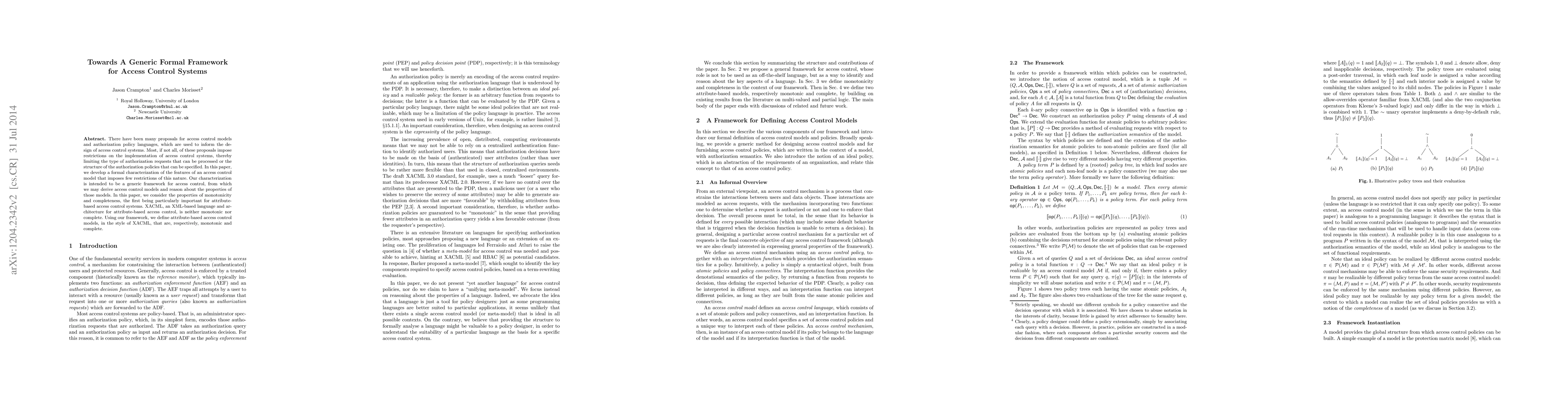 This paper proposes a generic formal framework for access control systems that minimizes restrictions on implementation, focusing on monotonicity and completeness properties. The framework aims to derive various access control models, including monotonic and complete attribute-based models, contrasting with XACML's limitations.