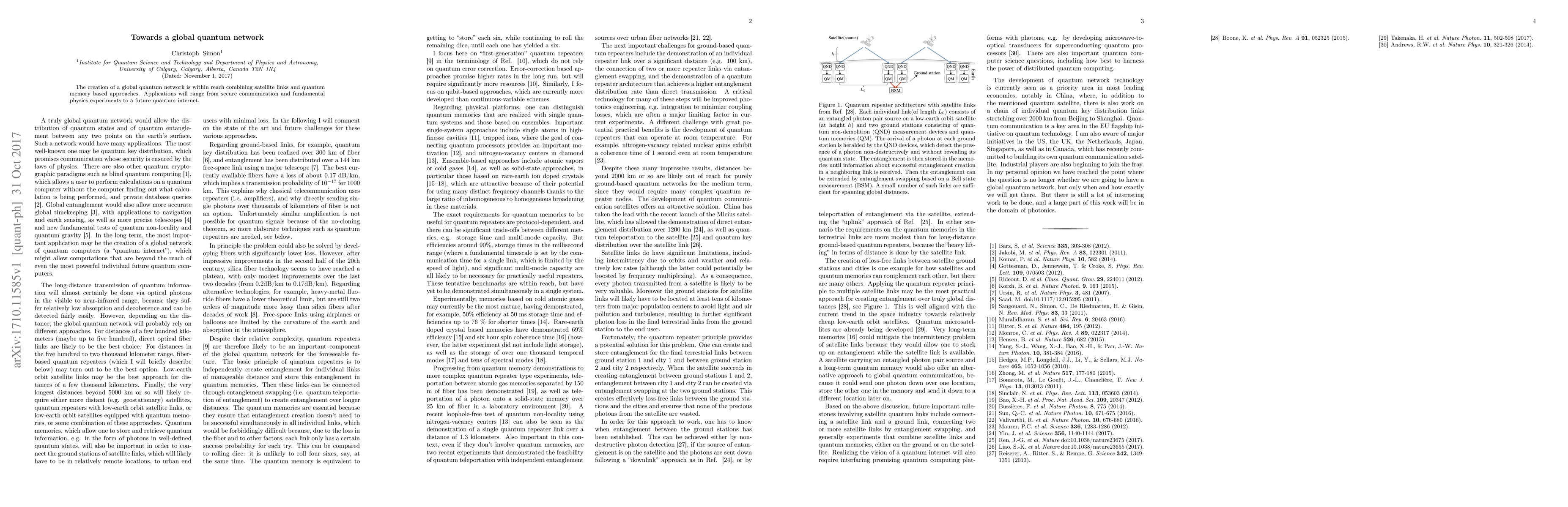 A global quantum network is feasible through a combination of satellite links and quantum memory approaches, enabling secure communication and fundamental physics experiments.