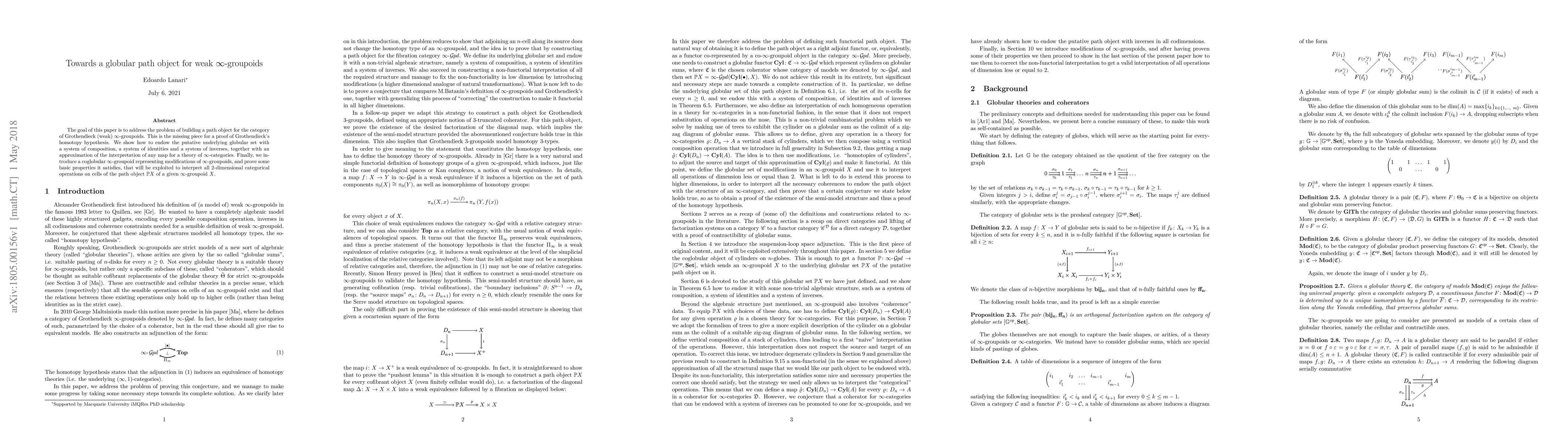 Researchers developed a path object for Grothendieck $ otinfty$-groupoids, addressing a key component of the homotopy hypothesis; they also introduced a coglobular $ otinfty$-groupoid representing modifications of $ otinfty$-groupoids.