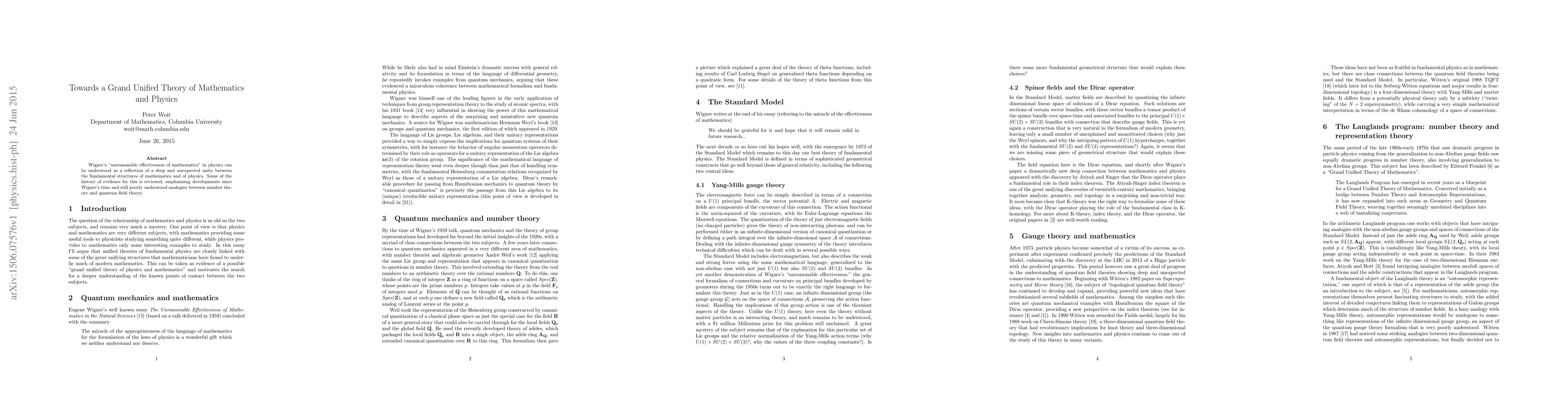 Wigner's "unreasonable effectiveness of mathematics" in physics can be understood as a reflection of a deep and unexpected unity between the fundamental structures of mathematics and of physics. Some of the history of evidence for this is reviewed, emphasizing developments since Wigner's time and still poorly understood analogies between number theory and quantum field theory.