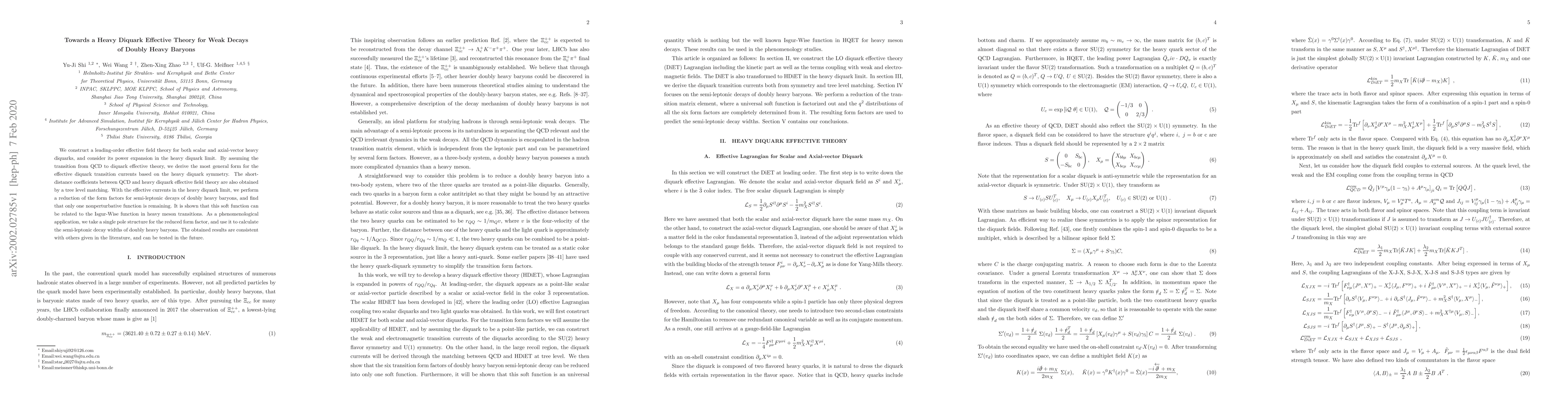 This paper constructs a leading-order effective theory for heavy diquarks in doubly heavy baryons, deriving transition currents and matching short-distance coefficients. It reduces form factors for semi-leptonic decays, showing that the soft function relates to the Isgur-Wise function, and calculates decay widths consistent with literature.