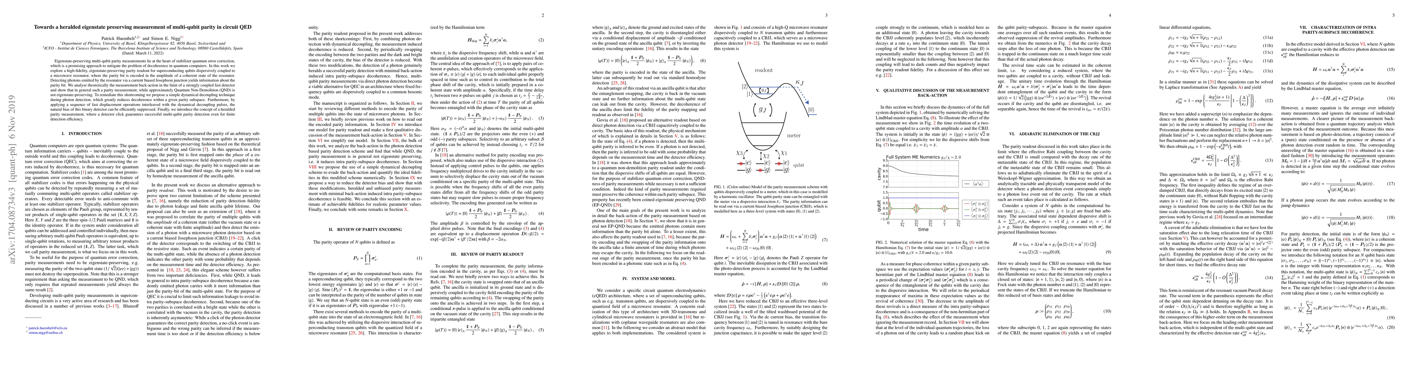 The paper presents a theoretical framework for a heralded eigenstate-preserving measurement of multi-qubit parity, incorporating dynamical decoupling to mitigate decoherence and bias in photon detection.