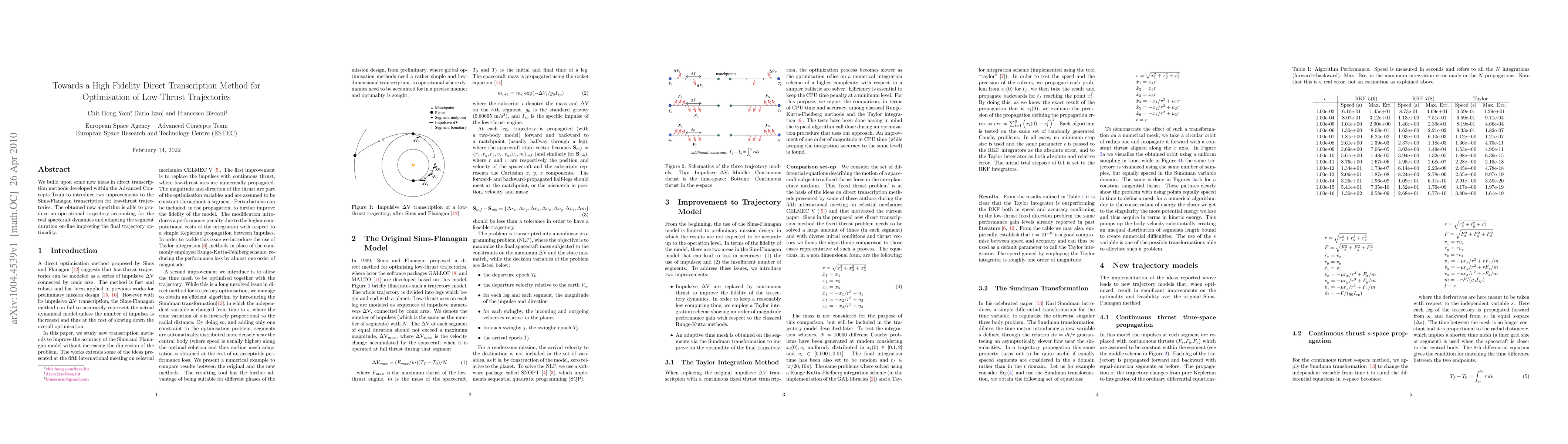 The paper presents an enhanced direct transcription method for optimizing low-thrust spacecraft trajectories. This new algorithm, built on Sims-Flanagan transcription, incorporates real spacecraft dynamics and adjusts segment duration during trajectory calculation, resulting in more optimal trajectories.