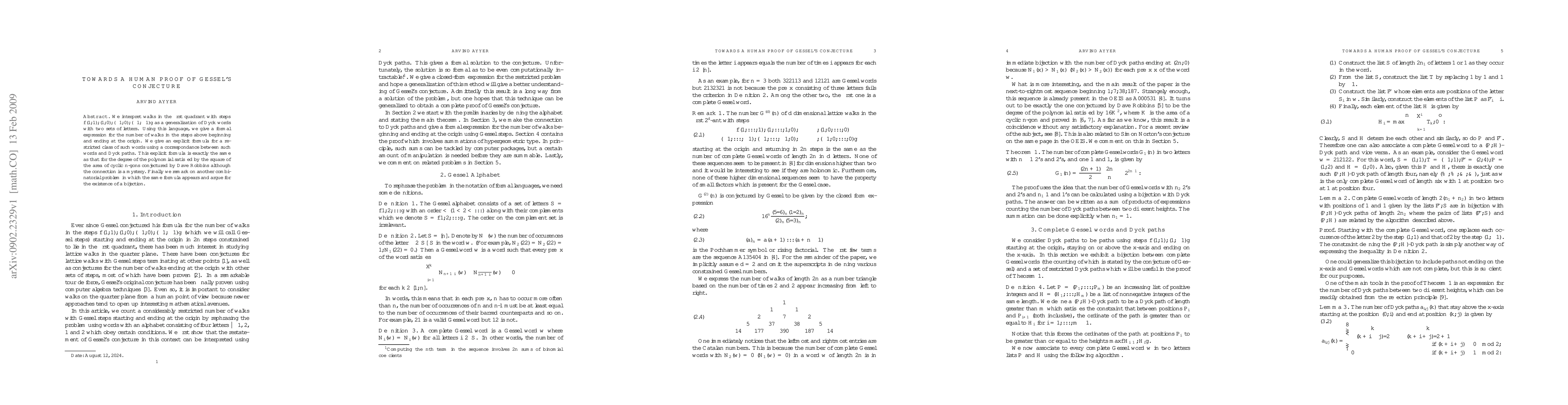 We interpret walks in the first quadrant with steps {(1,1),(1,0),(-1,0), (-1,-1)} as a generalization of Dyck words with two sets of letters. Using this language, we give a formal expression for the number of walks in the steps above beginning and ending at the origin. We give an explicit formula for a restricted class of such words using a correspondance between such words and Dyck paths. This explicit formula is exactly the same as that for the degree of the polynomial satisfied by the square of the area of cyclic n-gons conjectured by Dave Robbins although the connection is a mystery. Finally we remark on another combinatorial problem in which the same formula appears and argue for the existence of a bijection.