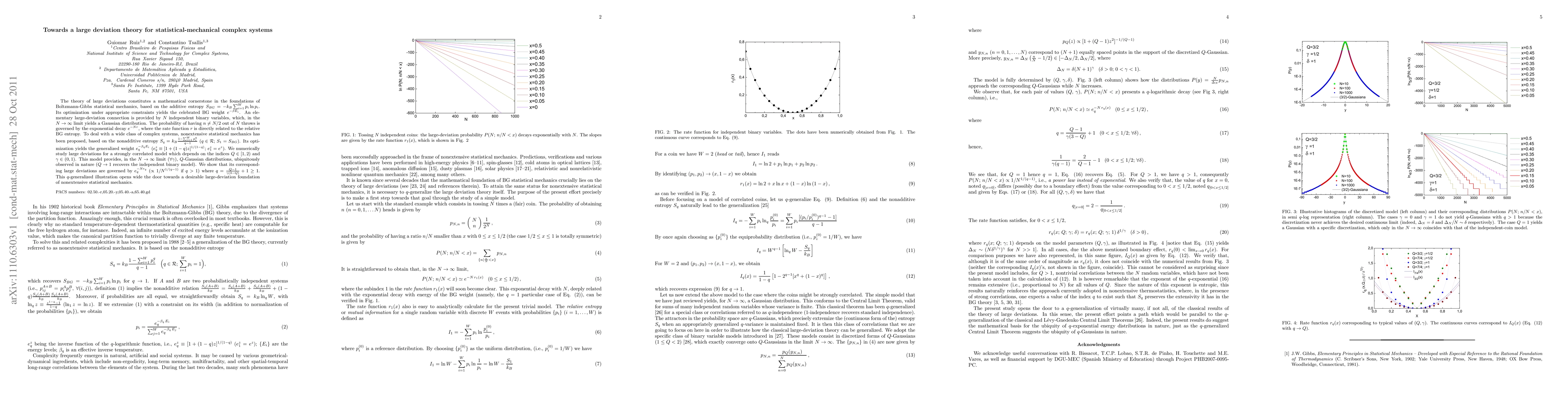 This paper develops a large deviation theory for complex statistical-mechanical systems using nonextensive statistical mechanics, showing that large deviations in a strongly correlated model yield $Q$-Gaussian distributions governed by $e_q^{-N r_q}$. This $q$-generalized framework extends the traditional Boltzmann-Gibbs theory to a broader class of systems.