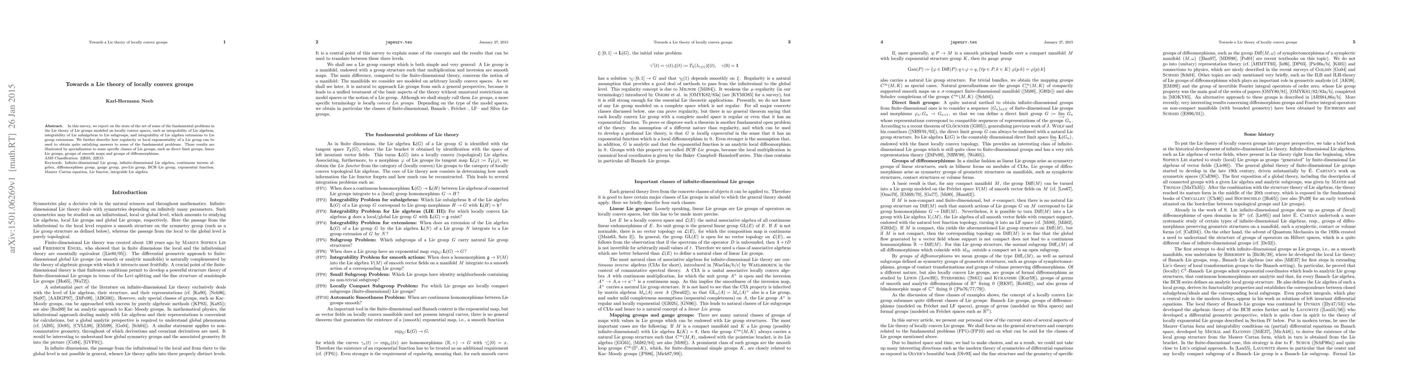 In this survey, we report on the state of the art of some of the fundamental problems in the Lie theory of Lie groups modeled on locally convex spaces, such as integrability of Lie algebras, integrability of Lie subalgebras to Lie subgroups, and integrability of Lie algebra extensions to Lie group extensions. We further describe how regularity or local exponentiality of a Lie group can be used to obtain quite satisfying answers to some of the fundamental problems. These results are illustrated by specialization to some specific classes of Lie groups, such as direct limit groups, linear Lie groups, groups of smooth maps and groups of diffeomorphisms.