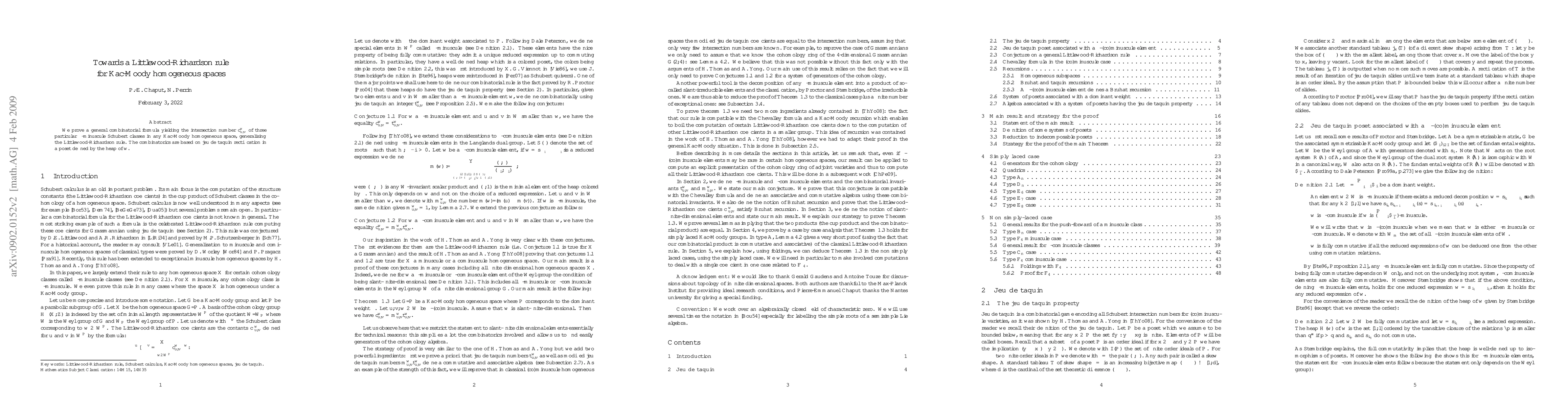 This research paper introduces a new combinatorial formula for calculating intersection numbers in Kac-Moody homogeneous spaces, extending the Littlewood-Richardson rule. The methodology relies on jeu de taquin rectification within a poset defined by the heap of $w$, marking a significant step towards understanding these complex mathematical structures.