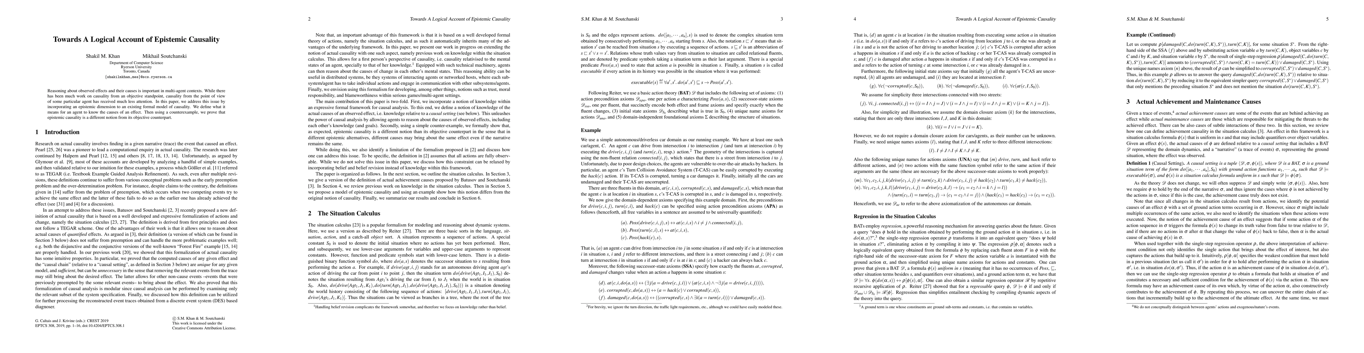 This paper introduces an epistemic dimension to formal causality models, defining what it means for an agent to know the causes of an effect and proving that epistemic causality differs from objective causality through a counterexample.