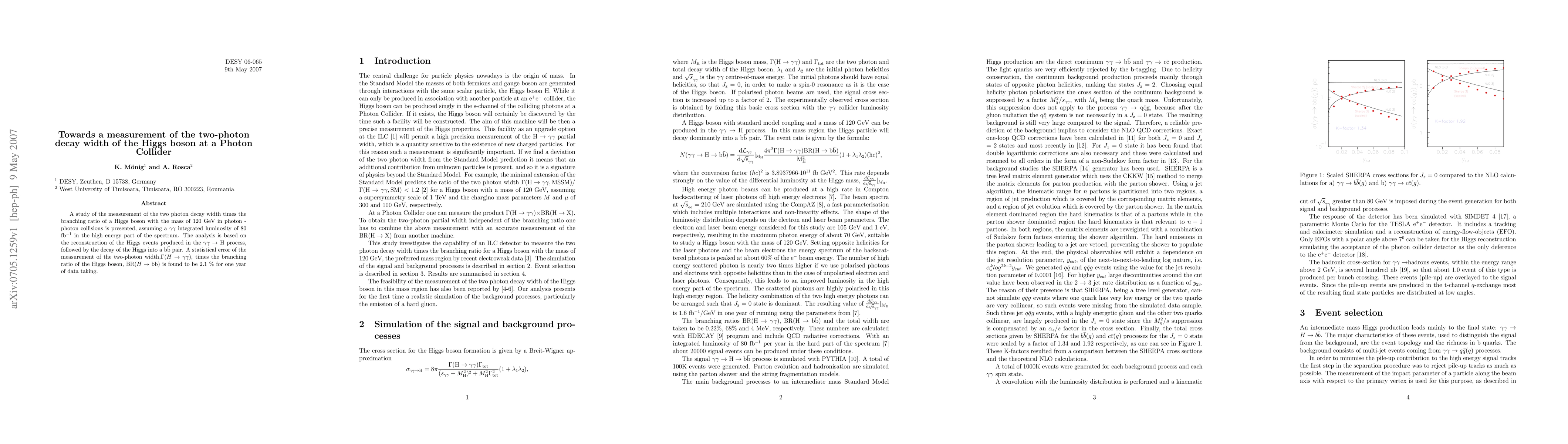 This paper investigates the measurement of the two-photon decay width of a 120 GeV Higgs boson in photon-photon collisions at a photon collider, with a focus on the gamma-gamma integrated luminosity of 80 fb^-1. The study estimates a statistical error of 2.1% for the two-photon width times the branching ratio, based on one year of data collection.