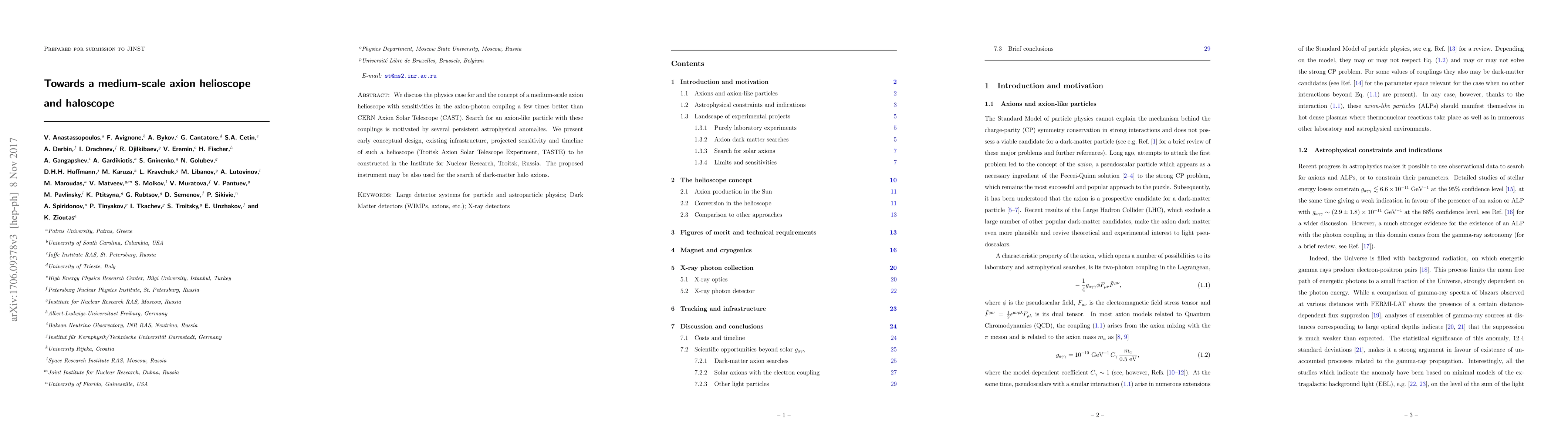 This paper outlines the concept and design for a medium-scale axion helioscope, TASTE, aiming for better sensitivity than CAST to detect axion-photon coupling, motivated by unresolved astrophysical anomalies. The proposed instrument could also search for dark-matter halo axions.