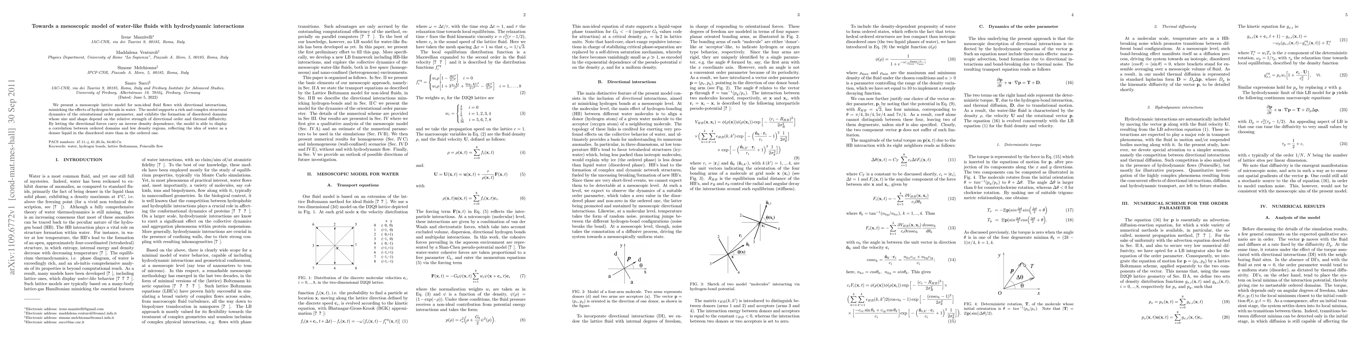 Researchers developed a mesoscopic model of water-like fluids with directional interactions to mimic hydrogen-bond effects. The model shows that ordered domains can form in disordered states, reflecting the idea that water is denser in its disordered state than its ordered one.