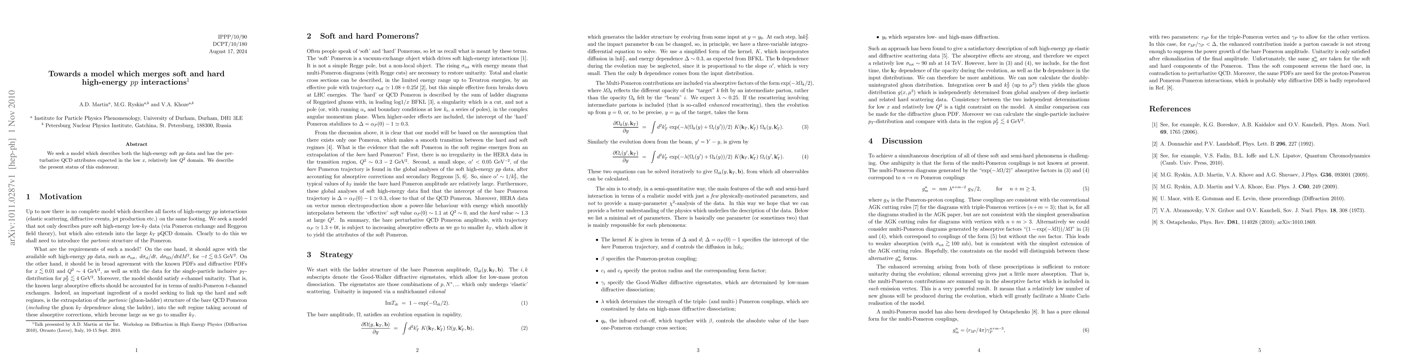 We seek a model which describes both the high-energy soft $pp$ data and has the perturbative QCD attributes expected in the low x, relatively low Q^2 domain. We describe the present status of this endeavour.