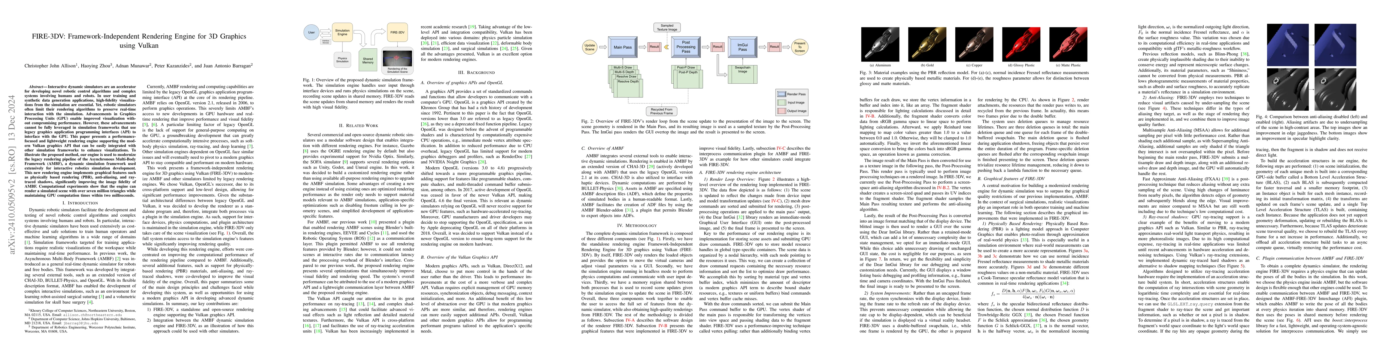Interactive dynamic simulators are an accelerator for developing novel robotic control algorithms and complex systems involving humans and robots. In user training and synthetic data generation applications, a high-fidelity visualization of the simulation is essential. Visual fidelity is dependent on the quality of the computer graphics algorithms used to render the simulated scene. Furthermore, the rendering algorithms must be implemented on the graphics processing unit (GPU) to achieve real-time performance, requiring the use of a graphics application programming interface (API). This paper presents a performance-focused and lightweight rendering engine supporting the Vulkan graphics API. The engine is designed to modernize the legacy rendering pipeline of Asynchronous Multi-Body Framework (AMBF), a dynamic simulation framework used extensively for interactive robotics simulation development. This new rendering engine implements graphical features such as physically based rendering (PBR), anti-aliasing, and ray-traced shadows, significantly improving the image quality of AMBF. Computational experiments show that the engine can render a simulated scene with over seven million triangles while maintaining GPU computation times within two milliseconds.