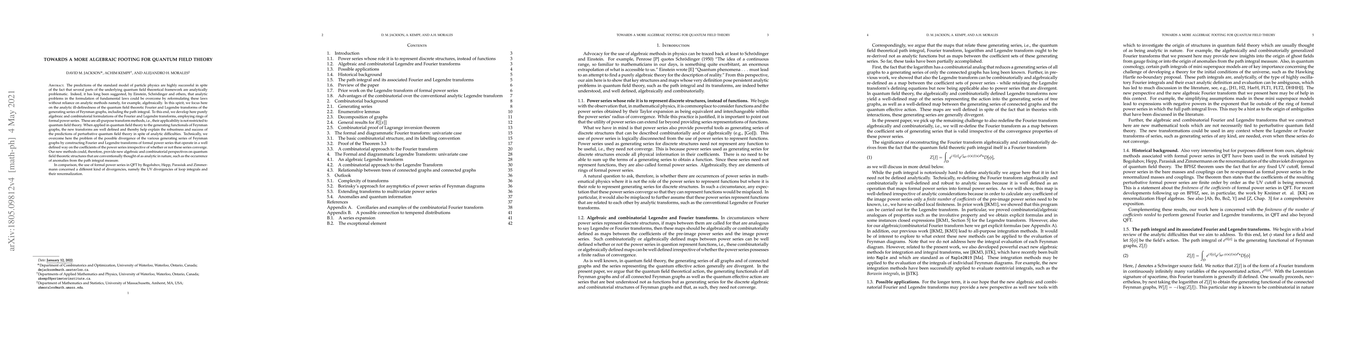 The predictions of the standard model of particle physics are highly successful in spite of the fact that several parts of the underlying quantum field theoretical framework are analytically problematic. Indeed, it has long been suggested, by Einstein, Schr\"odinger and others, that analytic problems in the formulation of fundamental laws could be overcome by reformulating these laws without reliance on analytic methods namely, for example, algebraically. In this spirit, we focus here on the analytic ill-definedness of the quantum field theoretic Fourier and Legendre transforms of the generating series of Feynman graphs, including the path integral. To this end, we develop here purely algebraic and combinatorial formulations of the Fourier and Legendre transforms, employing rings of formal power series. These are all-purpose transform methods and when applied in quantum field theory to the generating functionals of Feynman graphs, the new transforms are well defined and thereby help explain the robustness and success of the predictions of perturbative quantum field theory in spite of analytic difficulties. Technically, we overcome here the problem of the possible divergence of the various generating series of Feynman graphs by constructing Fourier and Legendre transforms of formal power series that operate in a well defined way on the coefficients of the power series irrespective of whether or not these series converge. Our new methods could, therefore, provide new algebraic and combinatorial perspectives on quantum field theoretic structures that are conventionally thought of as analytic in nature, such as the occurrence of anomalies from the path integral measure.