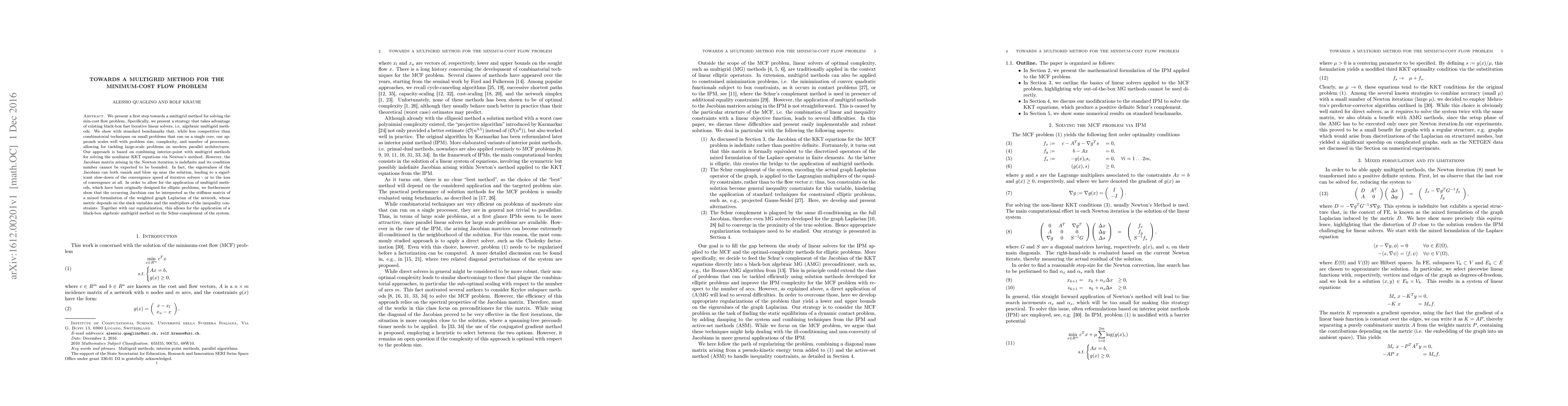 This paper proposes a multigrid method for solving the minimum-cost flow problem using interior-point methods and algebraic multigrid techniques, showing improved scalability on large-scale problems.