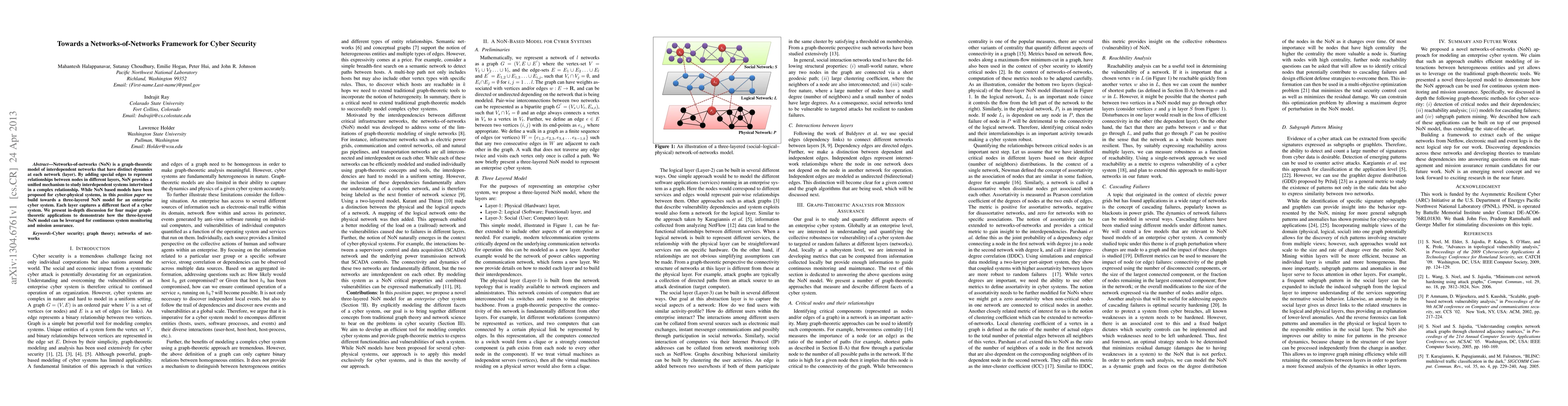 This paper proposes a three-layered Networks-of-Networks (NoN) model for cyber security, where each layer represents a different aspect of an enterprise cyber system. The authors demonstrate how this model can enhance continuous system monitoring and mission assurance through four major graph-theoretic applications.
