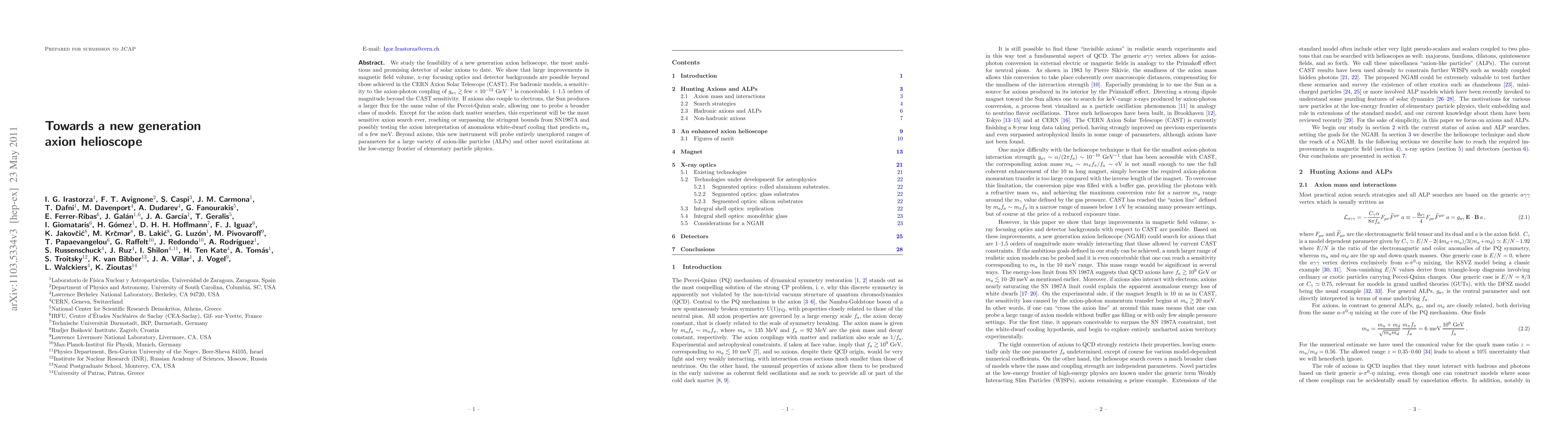 This paper explores the potential of a new axion helioscope to significantly enhance the detection of solar axions, surpassing the sensitivity of the CERN Axion Solar Telescope (CAST). It proposes improvements in magnetic field volume, x-ray optics, and background reduction, aiming to probe axion-photon couplings up to $\gagamma\gtrsim {\rm few} \times 10^{-12}$ GeV$^{-1}$, and explore a broader range of axion-like particles and novel excitations.