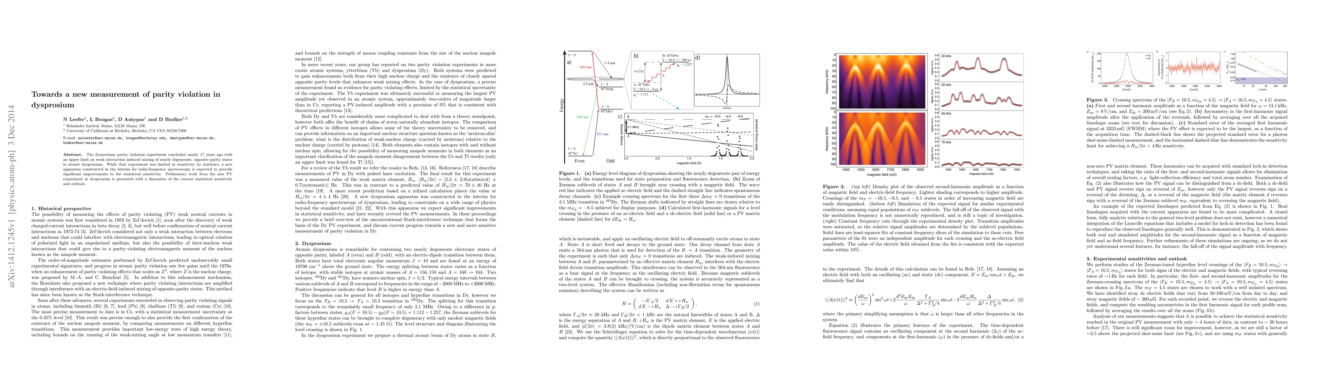 This paper reports on a new experiment to measure parity violation in dysprosium, utilizing improved radio-frequency spectroscopy to enhance sensitivity. Preliminary results indicate significant advancements over the previous experiment, promising more precise measurements of weak interaction effects.