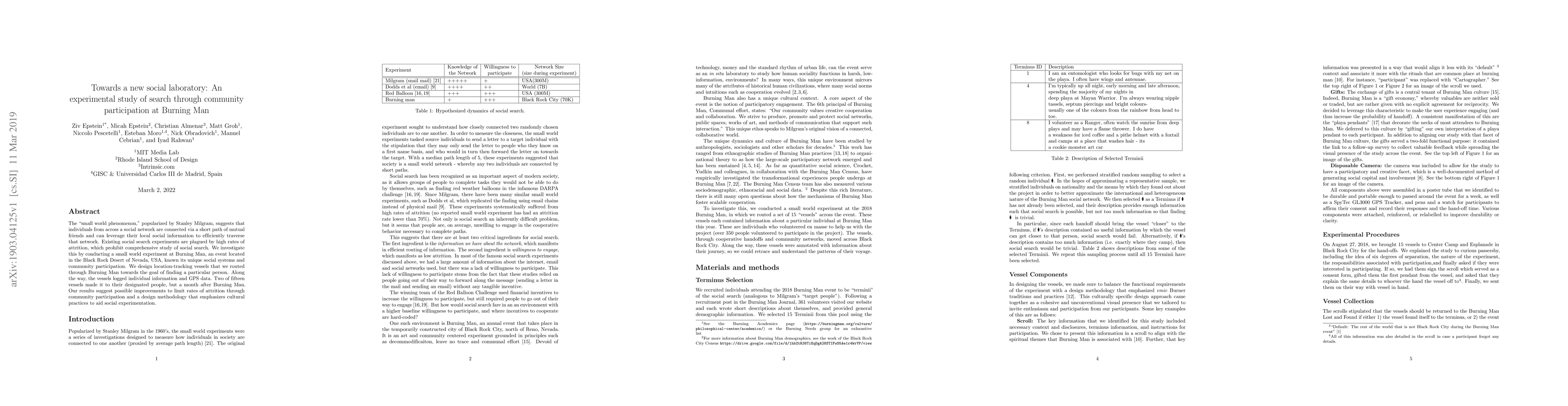 The "small world phenomenon," popularized by Stanley Milgram, suggests that individuals from across a social network are connected via a short path of mutual friends and can leverage their local social information to efficiently traverse that network. Existing social search experiments are plagued by high rates of attrition, which prohibit comprehensive study of social search. We investigate this by conducting a small world experiment at Burning Man, an event located in the Black Rock Desert of Nevada, USA, known its unique social systems and community participation. We design location-tracking vessels that we routed through Burning Man towards the goal of finding a particular person. Along the way, the vessels logged individual information and GPS data. Two of fifteen vessels made it to their designated people, but a month after Burning Man. Our results suggest possible improvements to limit rates of attrition through community participation and a design methodology that emphasizes cultural practices to aid social experimentation.