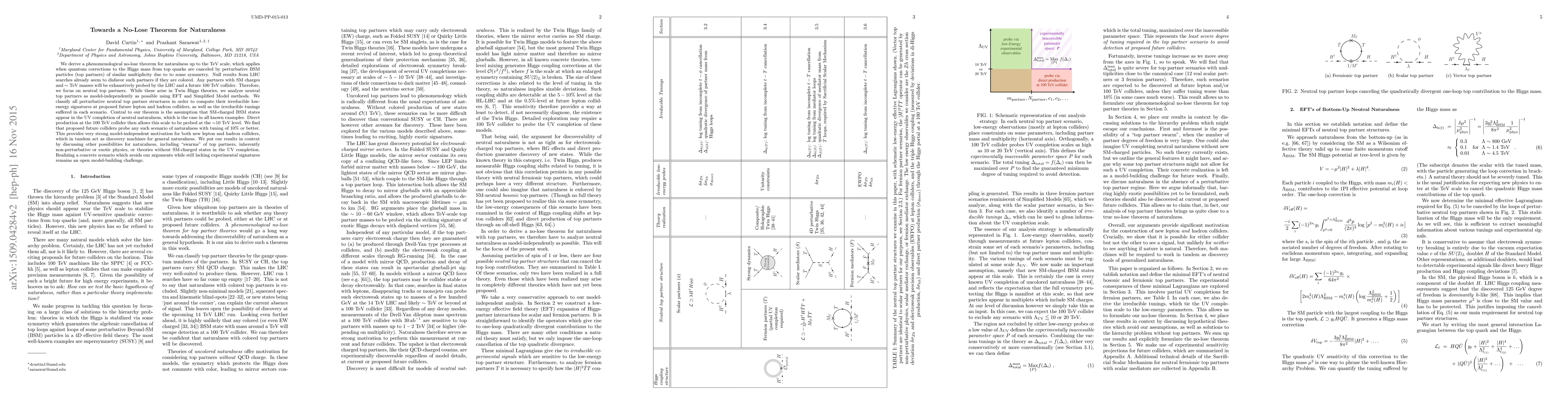We derive a phenomenological no-lose theorem for naturalness up to the TeV scale, which applies when quantum corrections to the Higgs mass from top quarks are canceled by perturbative BSM particles (top partners) of similar multiplicity due to to some symmetry. Null results from LHC searches already seem to disfavor such partners if they are colored. Any partners with SM charges and ~TeV masses will be exhaustively probed by the LHC and a future 100 TeV collider. Therefore, we focus on neutral top partners. While these arise in Twin Higgs theories, we analyze neutral top partners as model-independently as possible using EFT and Simplified Model methods. We classify all perturbative neutral top partner structures in order to compute their irreducible low-energy signatures at proposed future lepton and hadron colliders, as well as the irreducible tunings suffered in each scenario. Central to our theorem is the assumption that SM-charged BSM states appear in the UV completion of neutral naturalness, which is the case in all known examples. Direct production at the 100 TeV collider then allows this scale to be probed at the ~10 TeV level. We find that proposed future colliders probe any such scenario of naturalness with tuning of 10% or better. This provides very strong model-independent motivation for both new lepton and hadron colliders, which in tandem act as discovery machines for general naturalness. We put our results in context by discussing other possibilities for naturalness, including "swarms" of top partners, inherently non-perturbative or exotic physics, or theories without SM-charged states in the UV completion. Realizing a concrete scenario which avoids our arguments while still lacking experimental signatures remains an open model-building challenge.