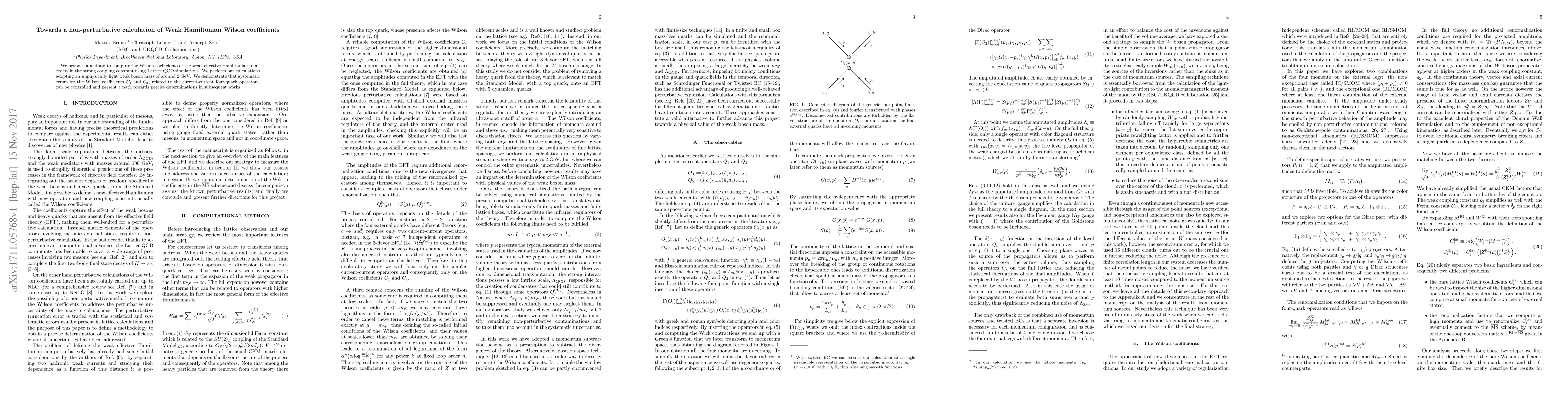 Researchers propose a new method to calculate weak Hamiltonian Wilson coefficients using Lattice QCD simulations, aiming for precise determinations with controlled systematic errors.