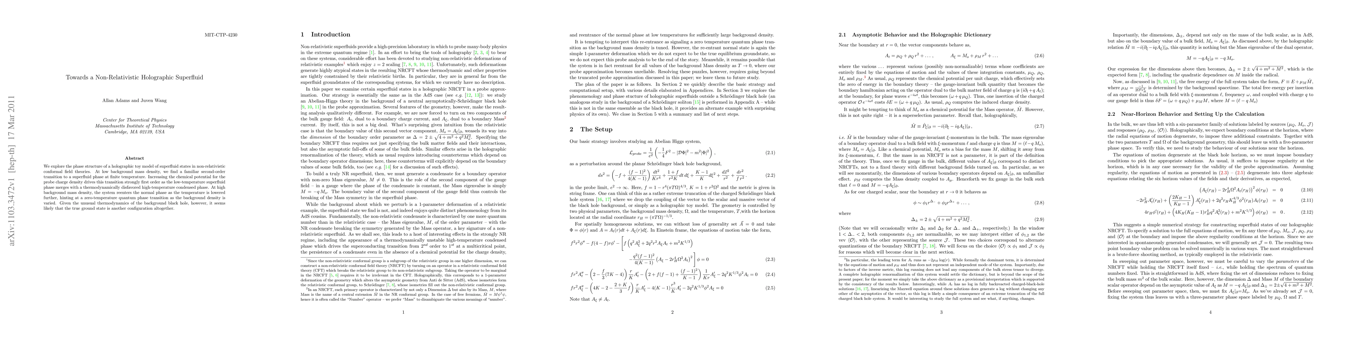 We explore the phase structure of a holographic toy model of superfluid states in non-relativistic conformal field theories. At low background mass density, we find a familiar second-order transition to a superfluid phase at finite temperature. Increasing the chemical potential for the probe charge density drives this transition strongly first order as the low-temperature superfluid phase merges with a thermodynamically disfavored high-temperature condensed phase. At high background mass density, the system reenters the normal phase as the temperature is lowered further, hinting at a zero-temperature quantum phase transition as the background density is varied. Given the unusual thermodynamics of the background black hole, however, it seems likely that the true ground state is another configuration altogether.