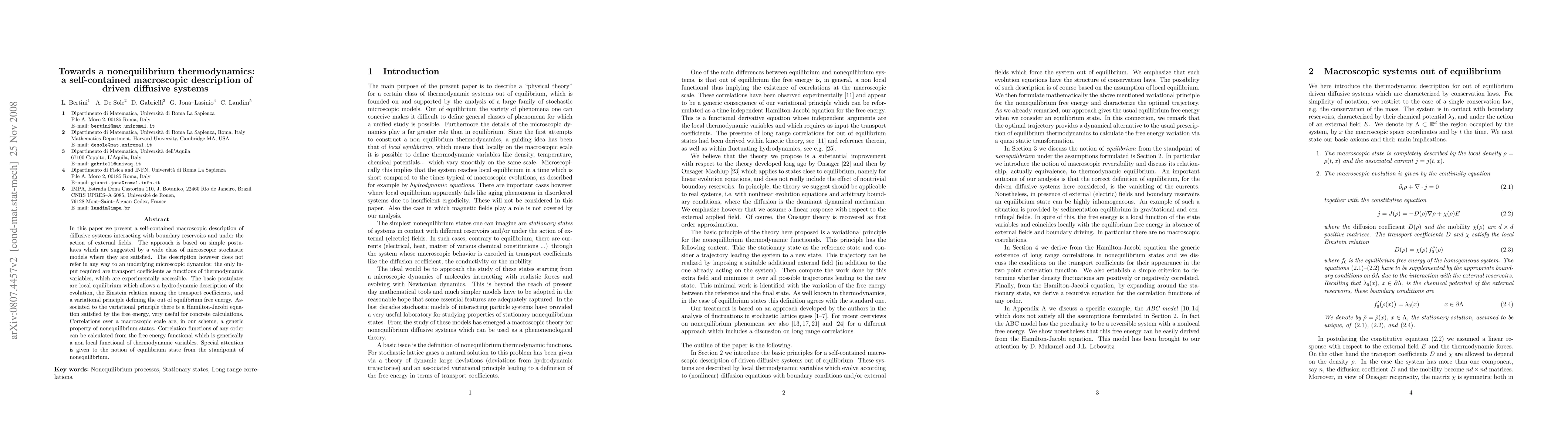 In this paper we present a self-contained macroscopic description of diffusive systems interacting with boundary reservoirs and under the action of external fields. The approach is based on simple postulates which are suggested by a wide class of microscopic stochastic models where they are satisfied. The description however does not refer in any way to an underlying microscopic dynamics: the only input required are transport coefficients as functions of thermodynamic variables, which are experimentally accessible. The basic postulates are local equilibrium which allows a hydrodynamic description of the evolution, the Einstein relation among the transport coefficients, and a variational principle defining the out of equilibrium free energy. Associated to the variational principle there is a Hamilton-Jacobi equation satisfied by the free energy, very useful for concrete calculations. Correlations over a macroscopic scale are, in our scheme, a generic property of nonequilibrium states. Correlation functions of any order can be calculated from the free energy functional which is generically a non local functional of thermodynamic variables. Special attention is given to the notion of equilibrium state from the standpoint of nonequilibrium.