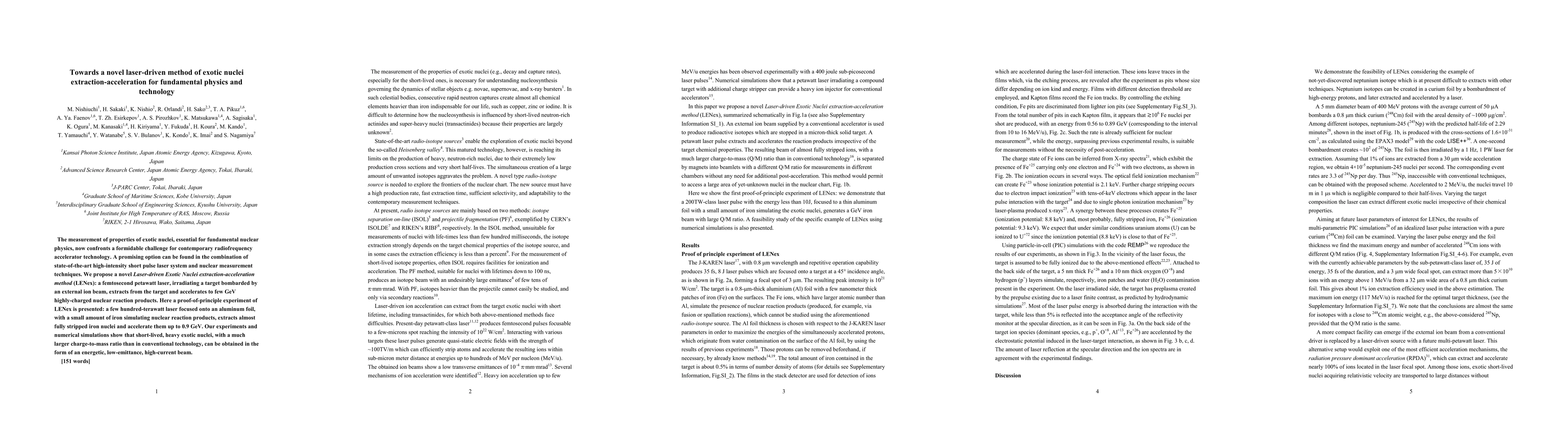 The paper proposes a novel laser-driven method, LENex, for extracting and accelerating exotic nuclei using high-intensity femtosecond lasers, demonstrating the extraction and acceleration of iron nuclei to 0.9 GeV. This method aims to overcome limitations in current radiofrequency accelerator technology for fundamental nuclear physics research.