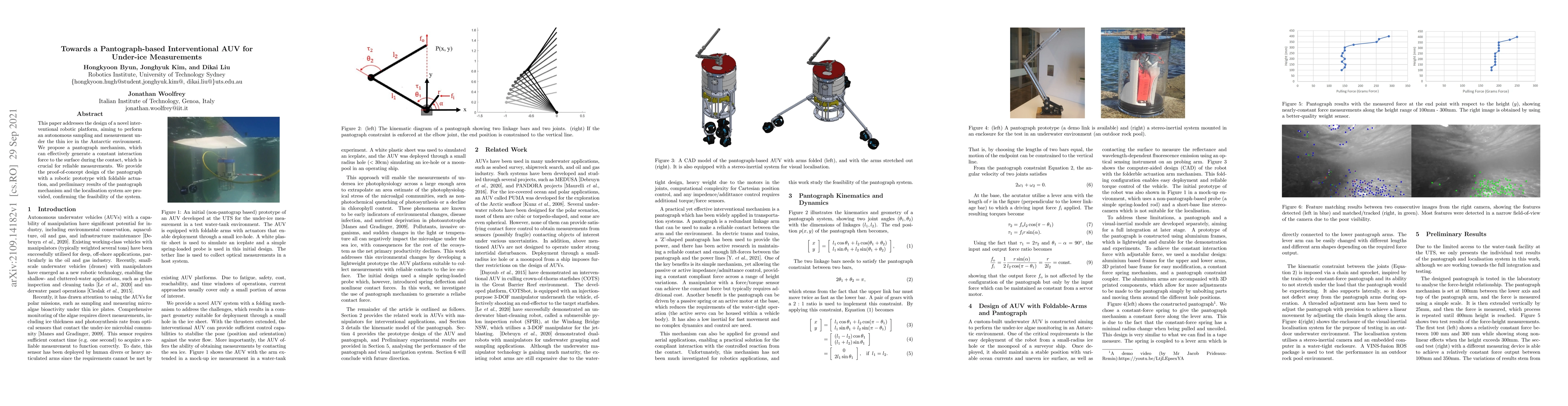 This paper addresses the design of a novel interventional robotic platform, aiming to perform an autonomous sampling and measurement under the thin ice in the Antarctic environment. We propose a pantograph mechanism, which can effectively generate a constant interaction force to the surface during the contact, which is crucial for reliable measurements. We provide the proof-of-concept design of the pantograph with a robotic prototype with foldable actuation, and preliminary results of the pantograph mechanism and the localisation system are provided, confirming the feasibility of the system.
