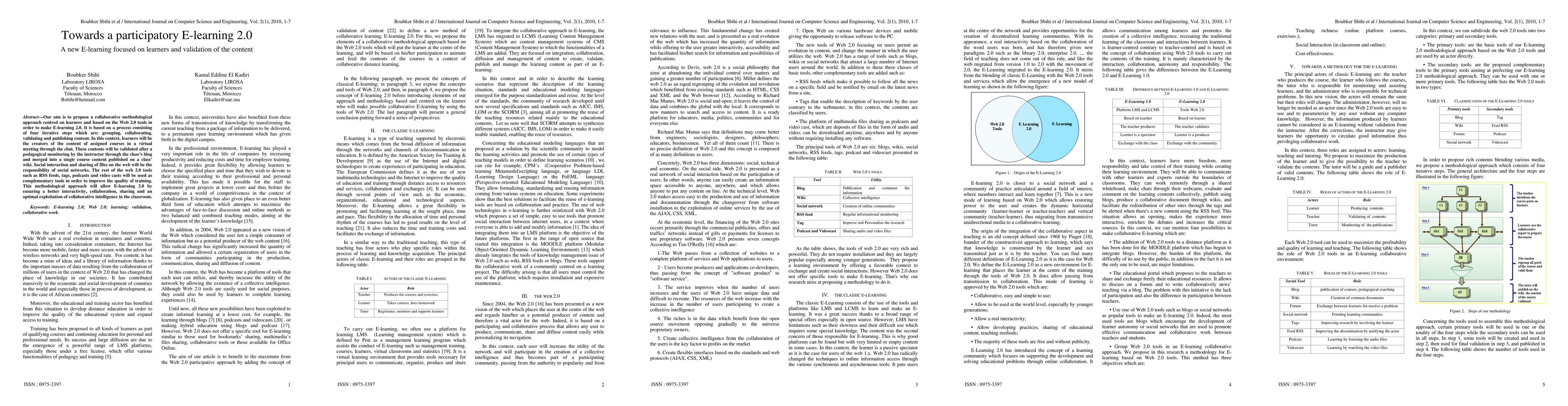 Our aim is to propose a collaborative methodological approach centred on learners and based on the Web 2.0 tools in order to make E-learning 2.0. It is based on a process consisting of four iterative steps which are: grouping, collaborating, validating and publishing content. In this context, learners will be the creators of the content of assigned courses in a virtual meeting through the chat. These contents will be validated after a pedagogical monitoring by the instructor through the class's blog and merged into a single course content published on a class wiki. Social interaction and sharing of files on the web will be the responsibility of social networks. The rest of the web 2.0 tools such as RSS feeds, tags, podcasts and video casts will be used as complementary tools in order to improve the quality of training. This methodological approach will allow E-learning 2.0 by ensuring a better interactivity, collaboration, sharing and an optimal exploitation of collaborative intelligence in the classroom.