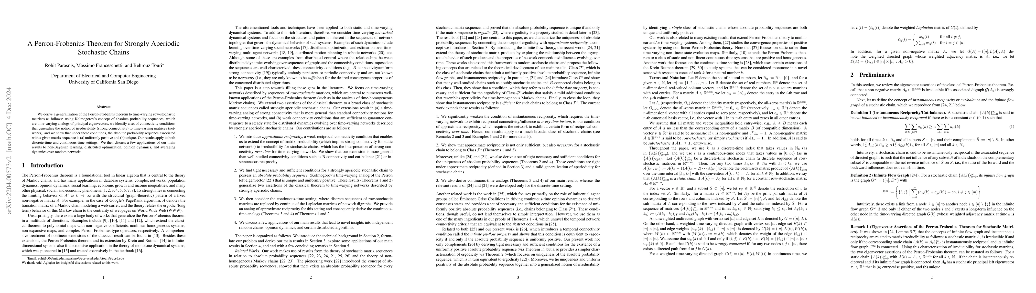 Researchers extend Perron-Frobenius theorem to time-varying networks, enabling applications in distributed averaging, optimization, and estimation for complex systems.