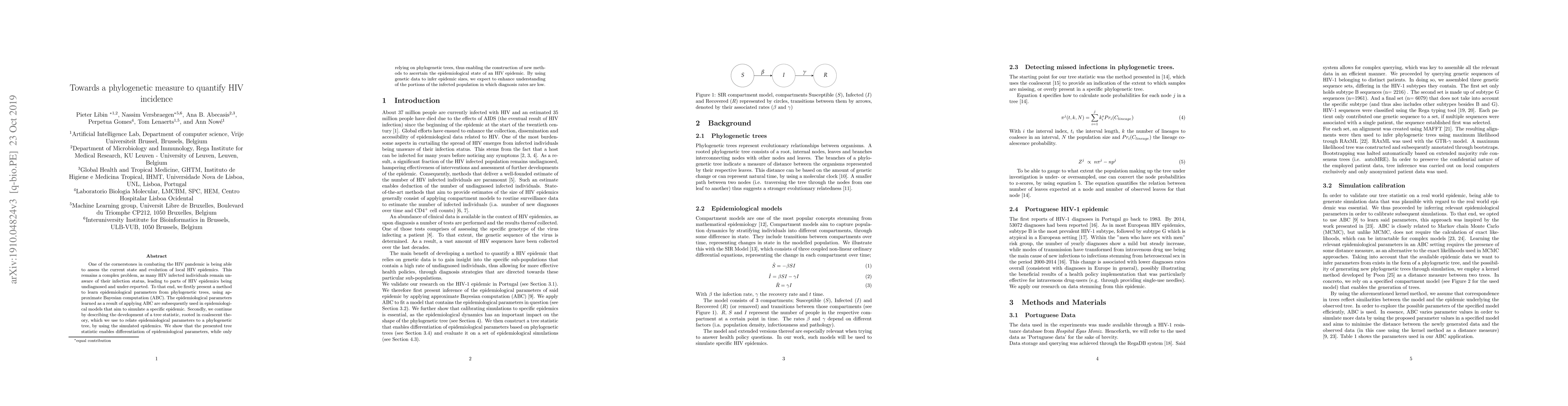 One of the cornerstones in combating the HIV pandemic is being able to assess the current state and evolution of local HIV epidemics. This remains a complex problem, as many HIV infected individuals remain unaware of their infection status, leading to parts of HIV epidemics being undiagnosed and under-reported. To that end, we firstly present a method to learn epidemiological parameters from phylogenetic trees, using approximate Bayesian computation (ABC). The epidemiological parameters learned as a result of applying ABC are subsequently used in epidemiological models that aim to simulate a specific epidemic. Secondly, we continue by describing the development of a tree statistic, rooted in coalescent theory, which we use to relate epidemiological parameters to a phylogenetic tree, by using the simulated epidemics. We show that the presented tree statistic enables differentiation of epidemiological parameters, while only relying on phylogenetic trees, thus enabling the construction of new methods to ascertain the epidemiological state of an HIV epidemic. By using genetic data to infer epidemic sizes, we expect to enhance understanding of the portions of the infected population in which diagnosis rates are low.