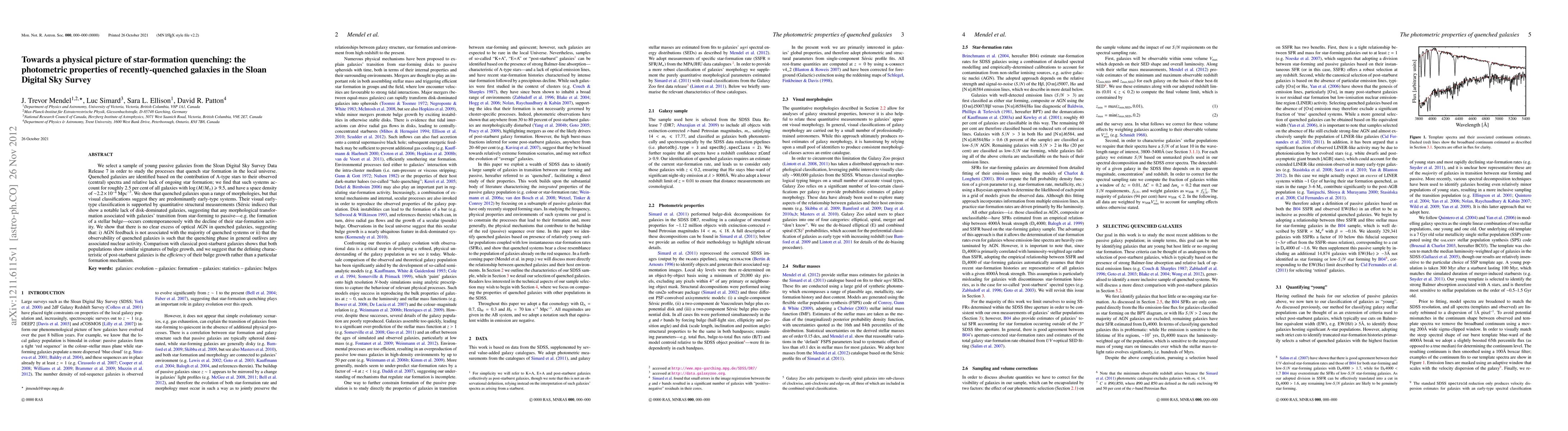 We select a sample of young passive galaxies from the Sloan Digital Sky Survey Data Release 7 in order to study the processes that quench star formation in the local universe. Quenched galaxies are identified based on the contribution of A-type stars to their observed (central) spectra and relative lack of ongoing star formation; we find that such systems account for roughly 2.5 per cent of all galaxies with log M_sun >= 9.5, and have a space density of ~2.2x10^-4 Mpc^-3. We show that quenched galaxies span a range of morphologies, but that visual classifications suggest they are predominantly early-type systems. Their visual early-type classification is supported by quantitative structural measurements Sersic indices that show a notable lack of disk-dominated galaxies, suggesting that any morphological transformation associated with galaxies' transition from star-forming to passive--e.g. the formation of a stellar bulge--occurs contemporaneously with the decline of their star-formation activity. We show that there is no clear excess of optical AGN in quenched galaxies, suggesting that: i) AGN feedback is not associated with the majority of quenched systems or ii) that the observability of quenched galaxies is such that the quenching phase in general outlives any associated nuclear activity. Comparison with classical post-starburst galaxies shows that both populations show similar signatures of bulge growth, and we suggest that the defining characteristic of post-starburst galaxies is the efficiency of their bulge growth rather than a particular formation mechanism.
