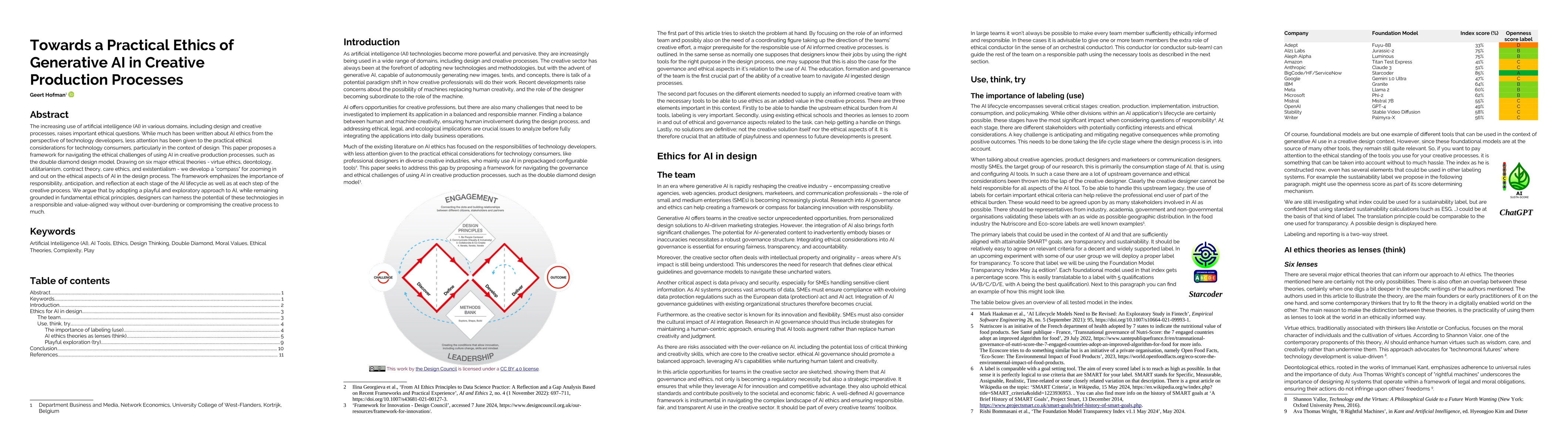 This paper proposes a framework to address ethical challenges in generative AI use within creative production, focusing on the practical considerations for technology users. It integrates six ethical theories to create a "compass" for navigating AI's ethical dimensions, emphasizing responsibility, anticipation, and reflection throughout the AI lifecycle and creative stages.