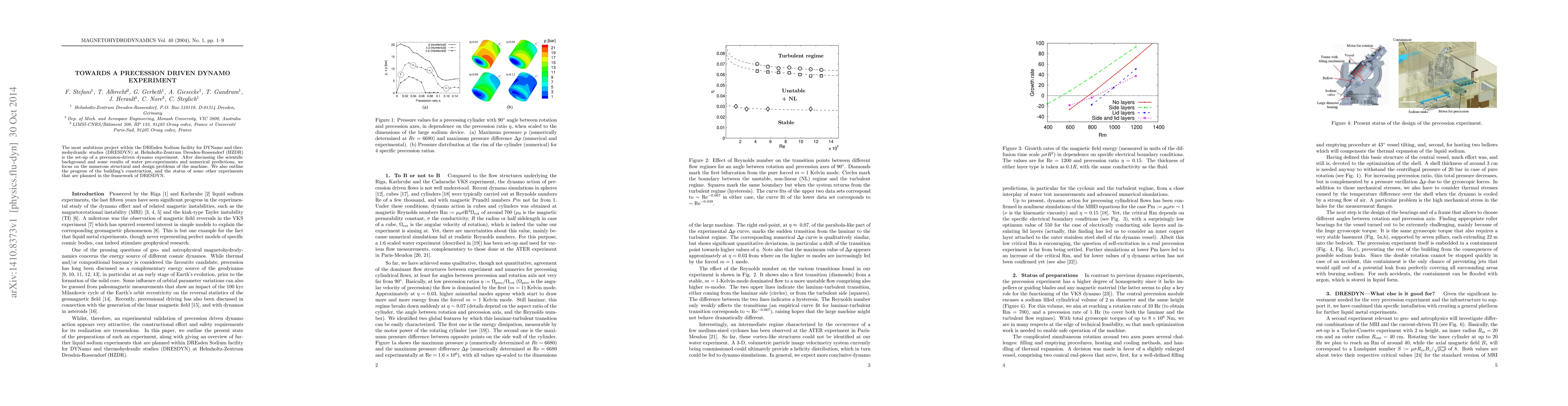 The most ambitious project within the DREsden Sodium facility for DYNamo and thermohydraulic studies (DRESDYN) at Helmholtz-Zentrum Dresden-Rossendorf (HZDR) is the set-up of a precession-driven dynamo experiment. After discussing the scientific background and some results of water pre-experiments and numerical predictions, we focus on the numerous structural and design problems of the machine. We also outline the progress of the building's construction, and the status of some other experiments that are planned in the framework of DRESDYN.