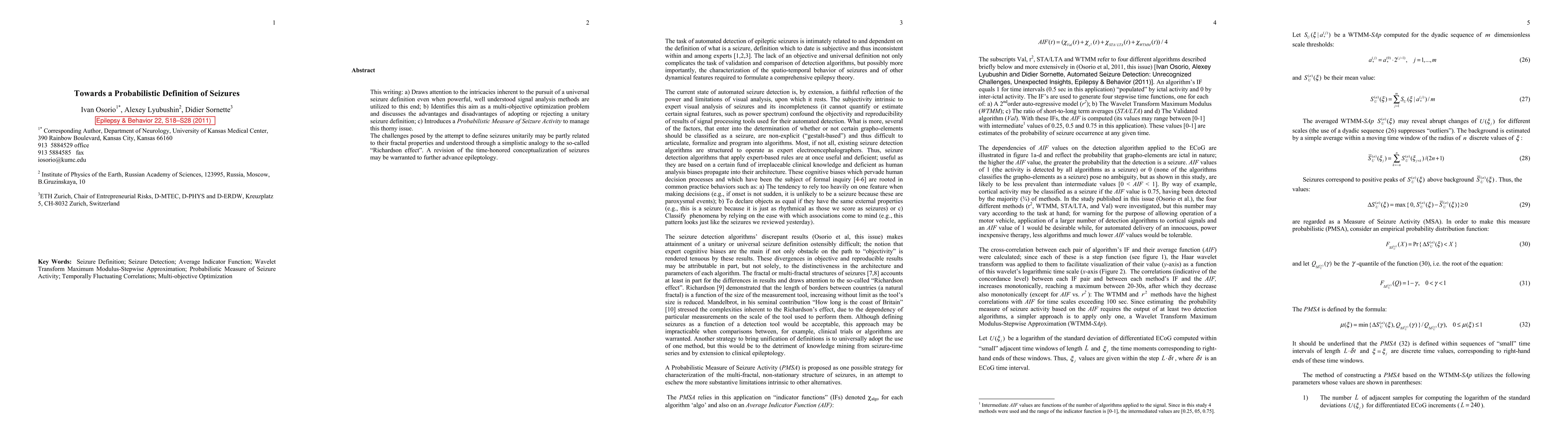 The paper discusses the complexities in defining seizures universally, framing it as a multi-objective optimization problem. It proposes a Probabilistic Measure of Seizure Activity to address these challenges, suggesting a potential revision of seizure conceptualization in epileptology.