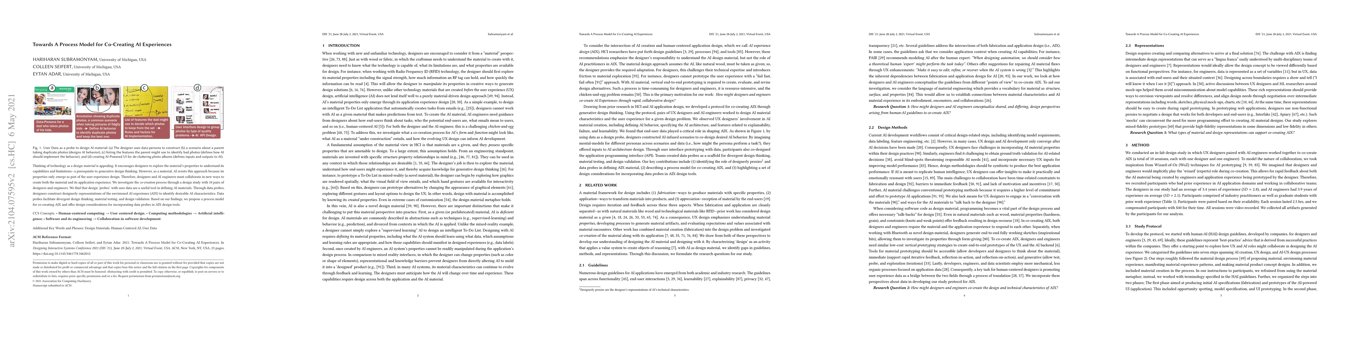 This paper explores collaborative design processes between designers and AI engineers to co-create AI experiences, finding that design 'probes' with user data are effective tools. The study proposes a process model for co-creating AI experiences and suggests incorporating data probes in design tools for better generative design thinking.