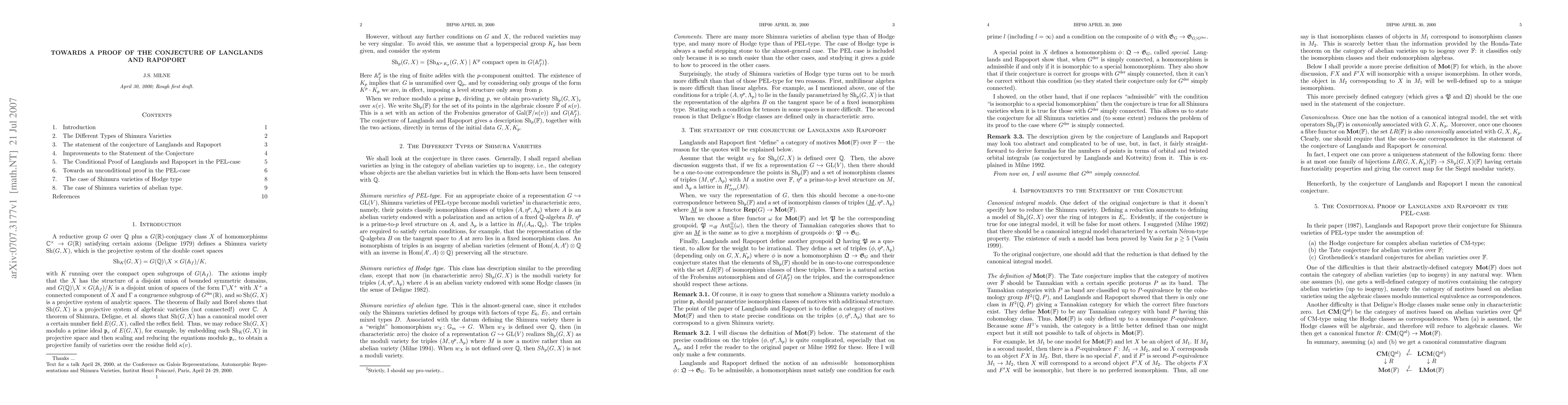 A conference talk discussing the conjecture of Langlands and Rapoport concerning the structure of the points on a Shimura variety modulo a prime of good reduction.