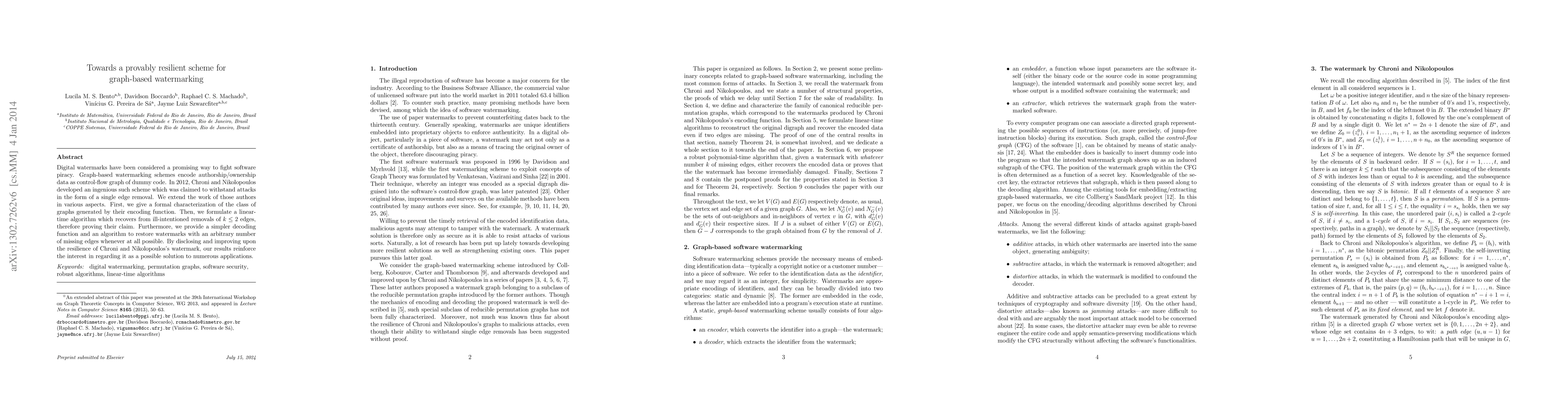 A new study improves upon a 2012 graph-based watermarking scheme, proving it can withstand up to two edge removals while also providing a simpler decoding function and methods for recovering from missing edges.