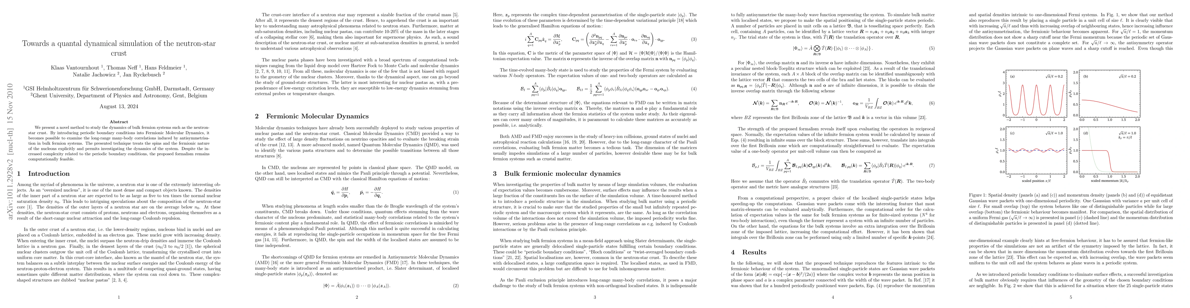 This paper introduces a novel method for simulating the dynamics of neutron-star crusts using Fermionic Molecular Dynamics with periodic boundary conditions, allowing for the examination of long-range many-body correlations and explicit treatment of nucleon spins and fermionic nature. The technique remains computationally feasible despite the added complexity.