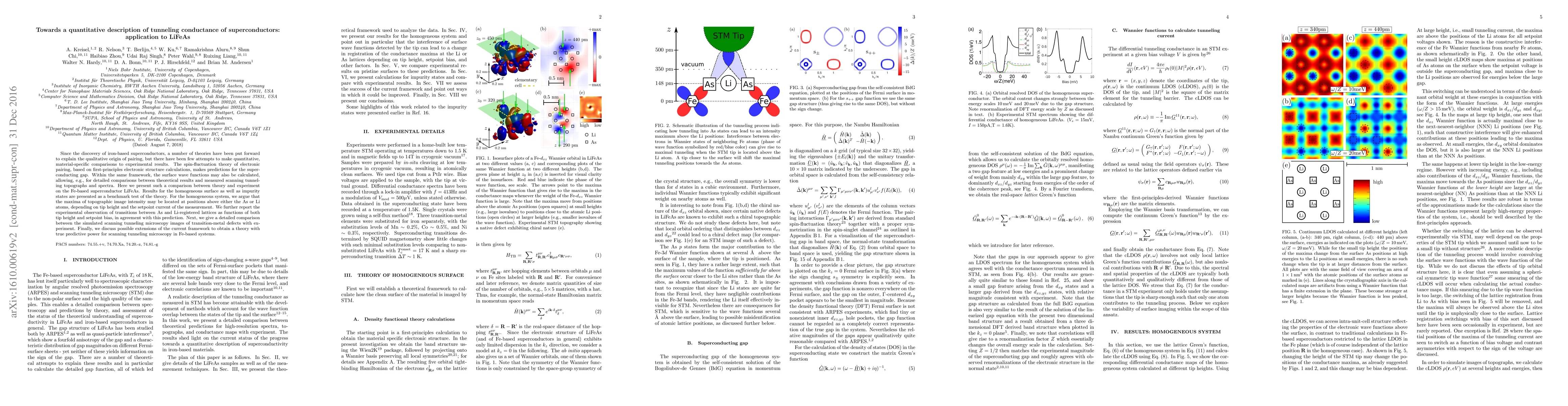 Since the discovery of iron-based superconductors, a number of theories have been put forward to explain the qualitative origin of pairing, but there have been few attempts to make quantitative, material-specific comparisons to experimental results. The spin-fluctuation theory of electronic pairing, based on first-principles electronic structure calculations, makes predictions for the superconducting gap. Within the same framework, the surface wave functions may also be calculated, allowing, e.g., for detailed comparisons between theoretical results and measured scanning tunneling topographs and spectra. Here we present such a comparison between theory and experiment on the Fe-based superconductor LiFeAs. Results for the homogeneous surface as well as impurity states are presented as a benchmark test of the theory. For the homogeneous system, we argue that the maxima of topographic image intensity may be located at positions above either the As or Li atoms, depending on tip height and the setpoint current of the measurement. We further report the experimental observation of transitions between As and Li-registered lattices as functions of both tip height and setpoint bias, in agreement with this prediction. Next, we give a detailed comparison between the simulated scanning tunneling microscopy images of transition-metal defects with experiment. Finally, we discuss possible extensions of the current framework to obtain a theory with true predictive power for scanning tunneling microscopy in Fe-based systems.