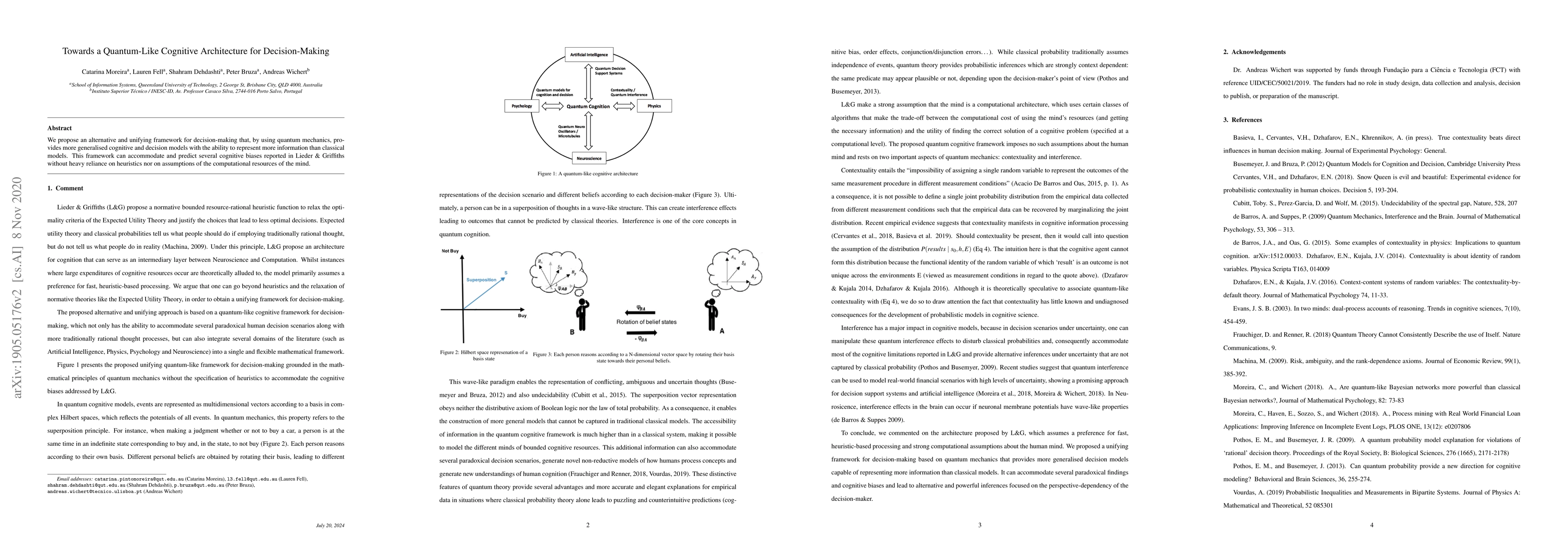This paper proposes a new framework for decision-making that uses quantum mechanics to provide more generalised cognitive models, potentially addressing cognitive biases without relying on heuristics or computational assumptions.