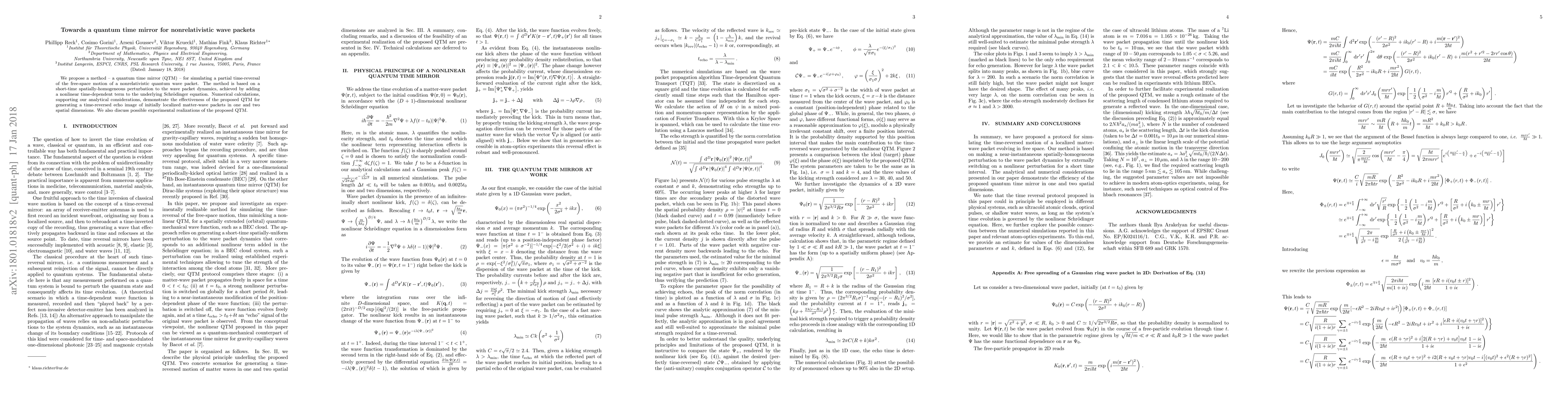 This research introduces a 'Quantum Time Mirror' (QTM) method to simulate a partial time-reversal for nonrelativistic quantum wave packets. Using a short-term spatial perturbation and a time-dependent term in the Schrödinger equation, the QTM successfully generates a time-reversed echo of initially localized wave packets in 1D and 2D, with potential experimental applications discussed.
