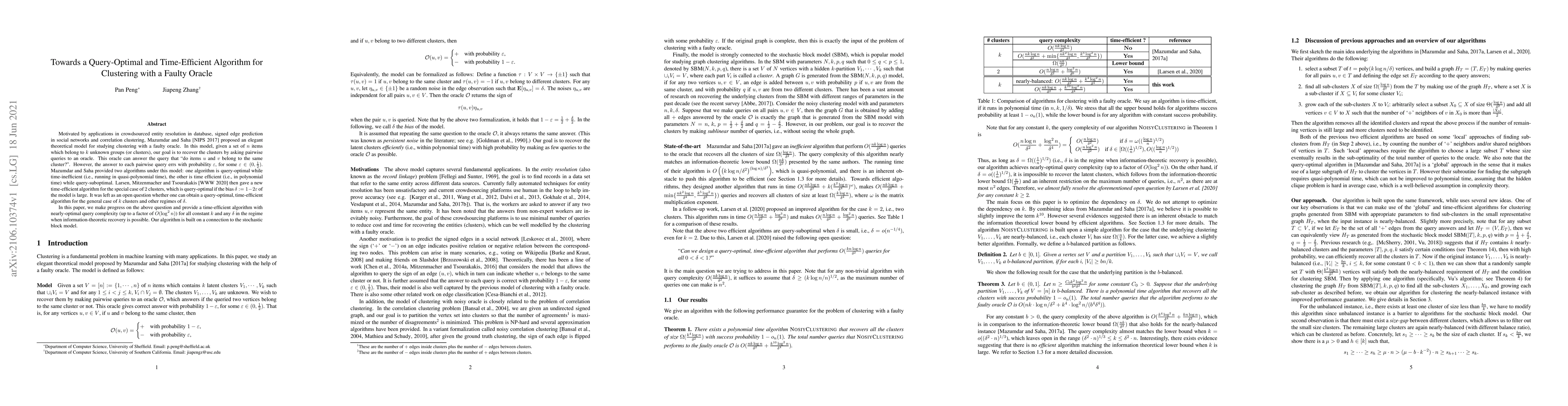 Researchers have developed a time-efficient algorithm for clustering with a faulty oracle that achieves nearly-optimal query complexity, allowing for efficient recovery of clusters in various regimes.